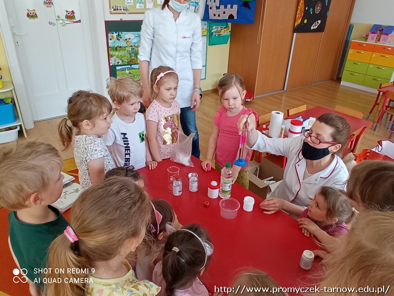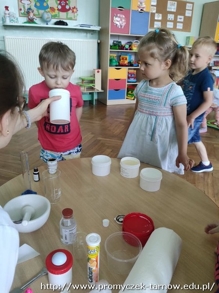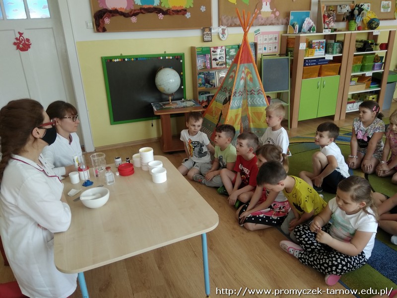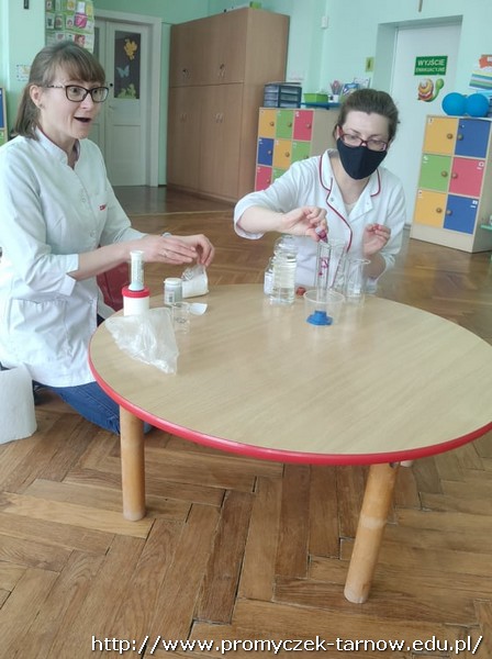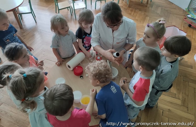 We wtorek do naszego przedszkola zawitali tajemniczy goście. Były to Panie, które na co dzień pracują w aptece. Podczas zajęć opowiedziały dzieciom o swojej pracy, przyniosły wiele ciekawych substancji oraz przedmiotów, które używają w trakcie pracy. Panie wspólnie z dziećmi przygotowały maść oraz przeprowadziły wiele ciekawych eksperymentów. To był wspaniały dzień.