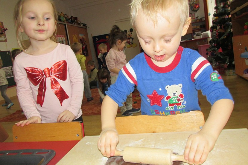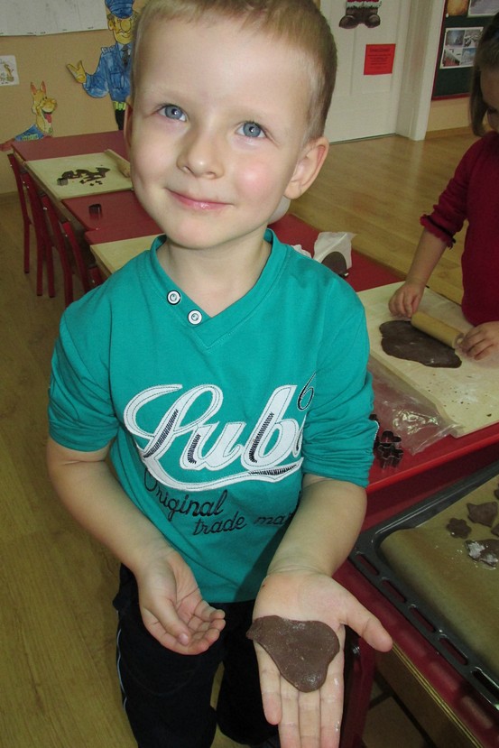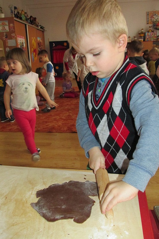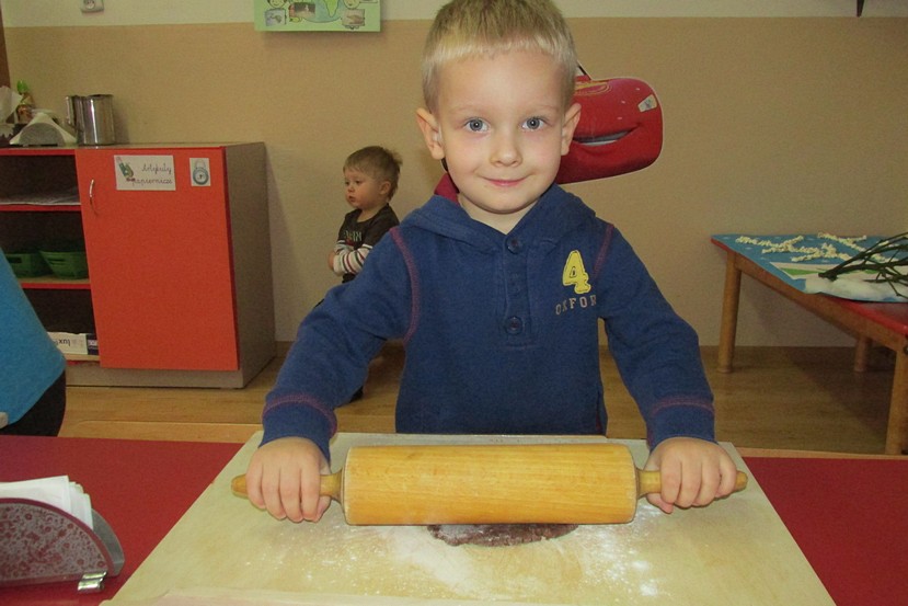 Idąc w myśl za tą zasadą dzieci z grupy Smyki i Asy zabrały się we środę – 17 grudnia 2014 roku za pieczenie pierniczków. Pani Ula z samego rana przygotowała ciasto, które czekało spokojnie w lodówce na czas zajęć.