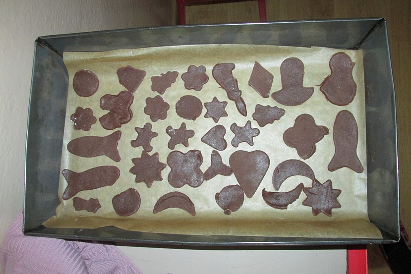 Przygotowane ciastka wylądowały w piekarniku, a następnego dnia zostały poddane czekoladowym zabiegom, dzięki którym wyglądały wspaniale i apetycznie! Pani Ania przygotowała dla każdego piękną paczuszkę, którą Smyki i Asy zabrały ze sobą do domu. Mamy nadzieję, że wytrzymają do Świąt :)