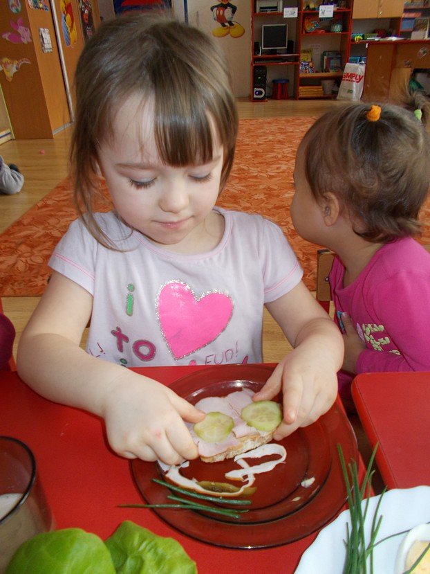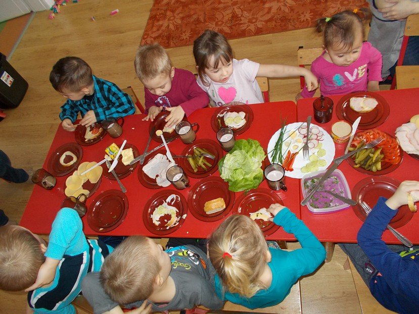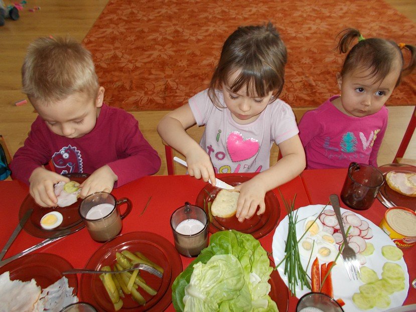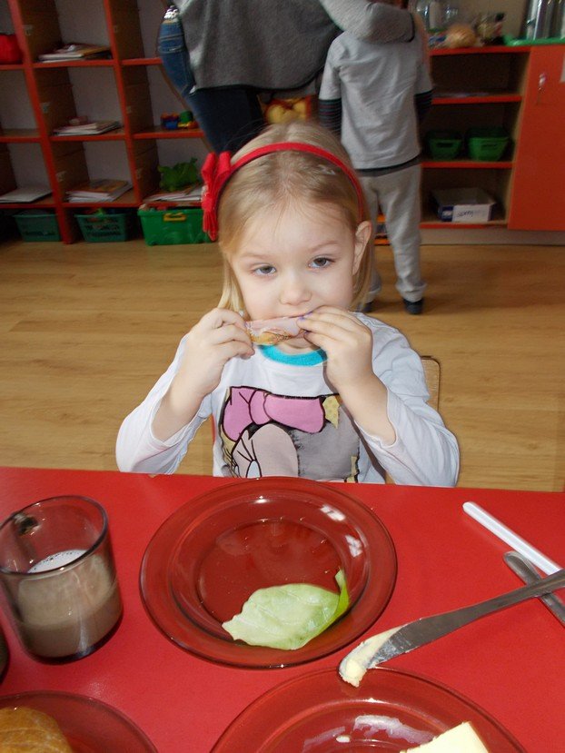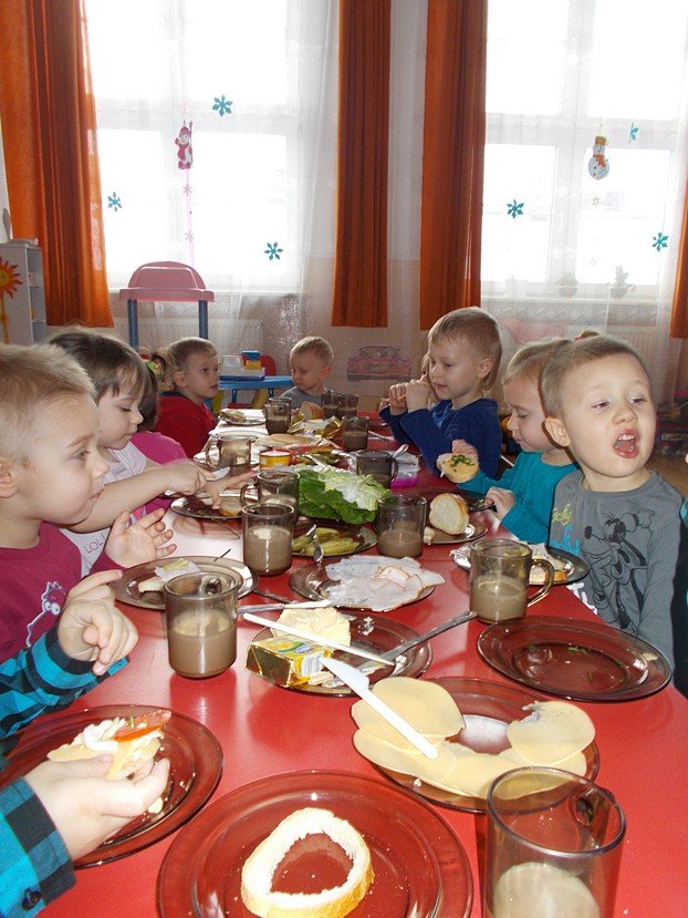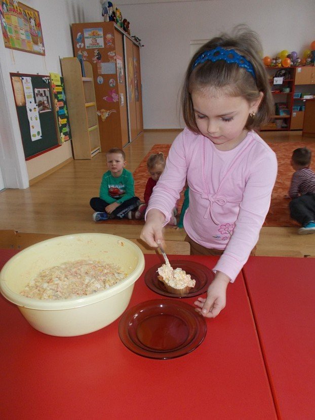 Oczywiście pani Ania i pani Paulina zadbały o to, by oprócz wiedzy teoretycznej, ich wychowankowie zdobyli również praktyczne umiejętności. Właśnie dlatego Promyczki przygotowały we środę – 4 lutego smakowite kanapki pełne witamin, natomiast w piątek 6 lutego – pyszną sałatkę jarzynową. Okazało się, że nawet największe niejadki mają smaczek na samodzielnie przygotowane specjały!