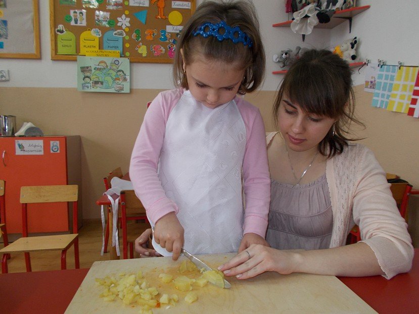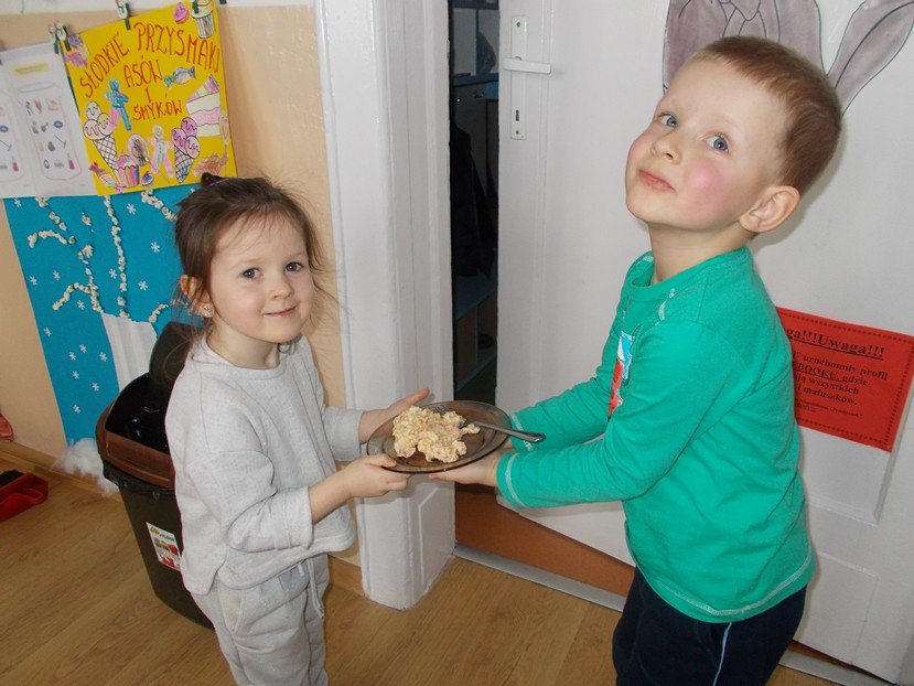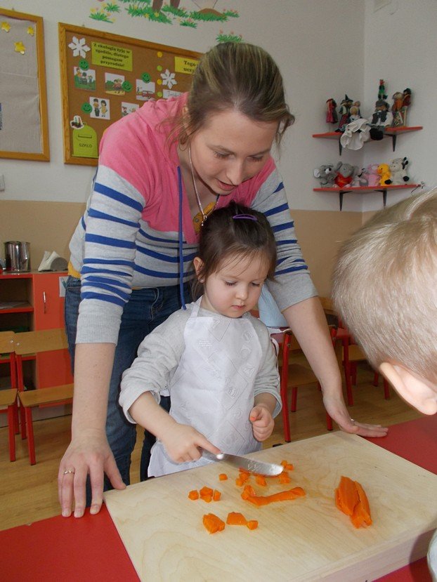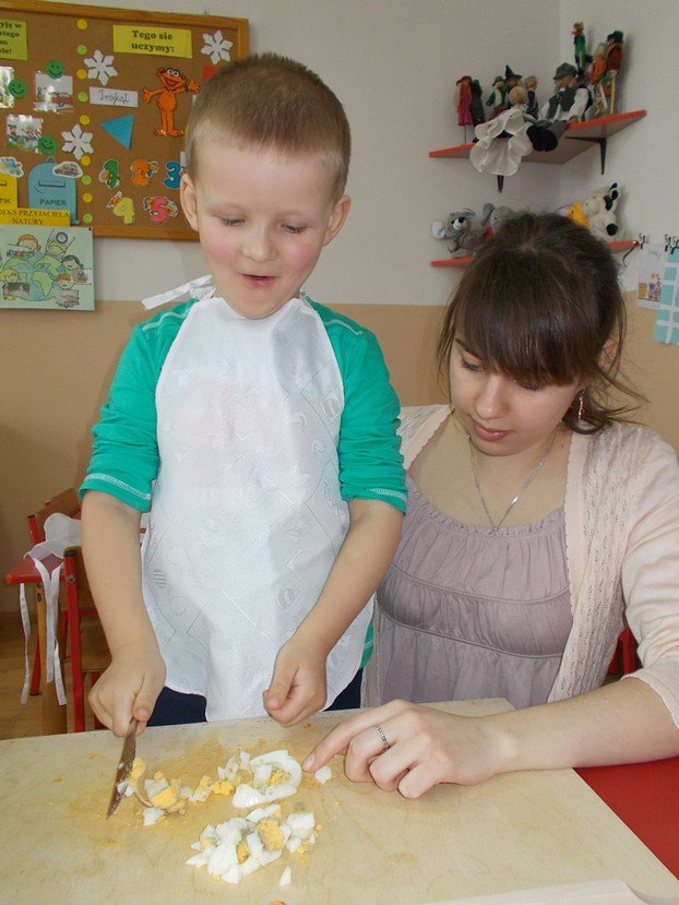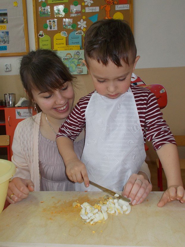 Pierwszy tydzień lutego w grupie Asów i Smyków upłynął pod hasłem „Jestem samodzielny w kuchni”. Dzieci dowiedziały się wielu pożytecznych rzeczy, m.in. na temat właściwego odżywania i bezpieczeństwa pracy z narzędziami kuchennymi.