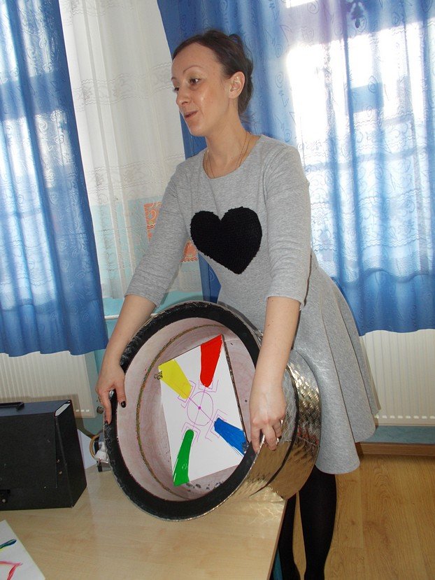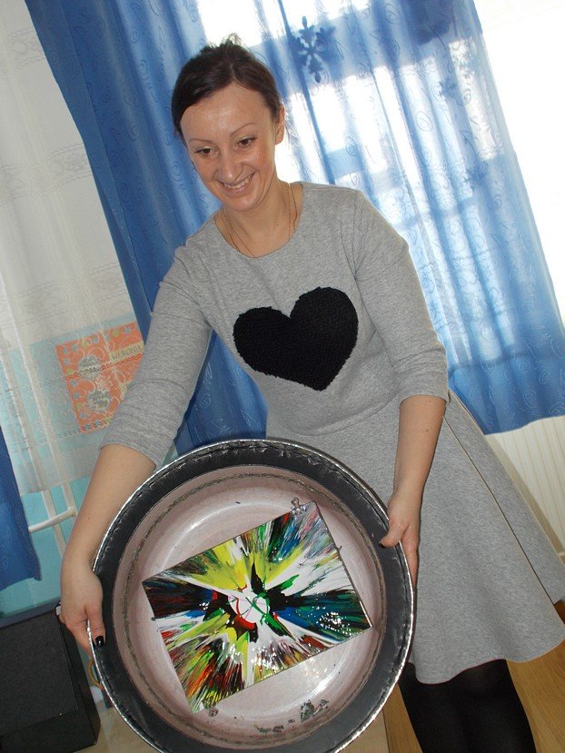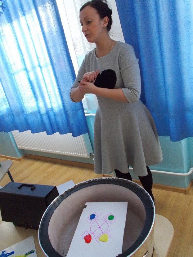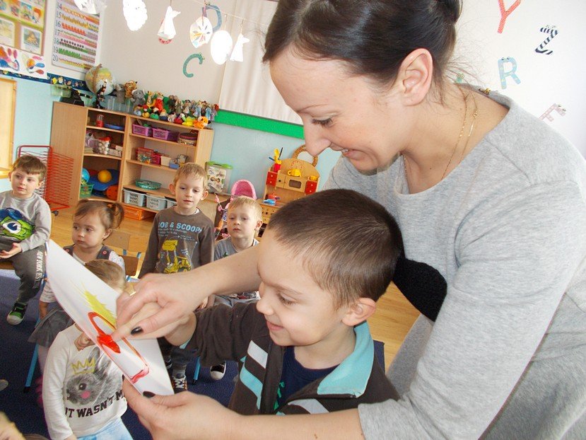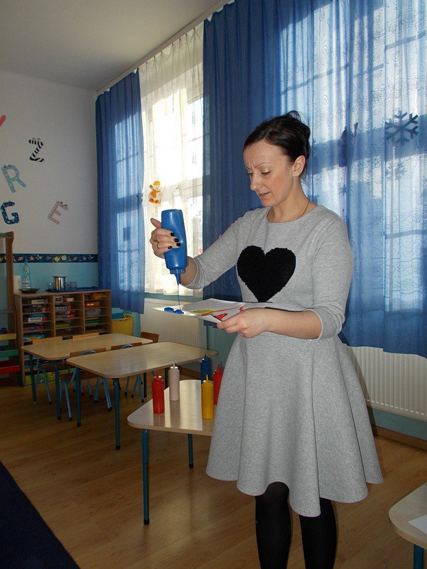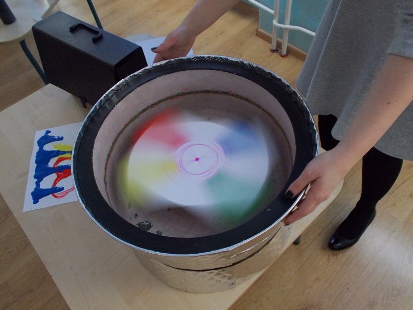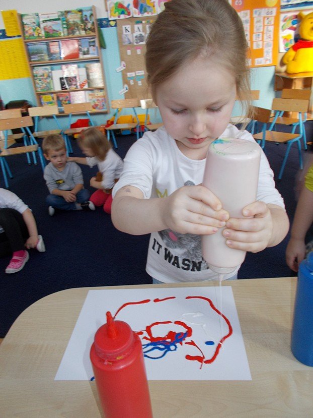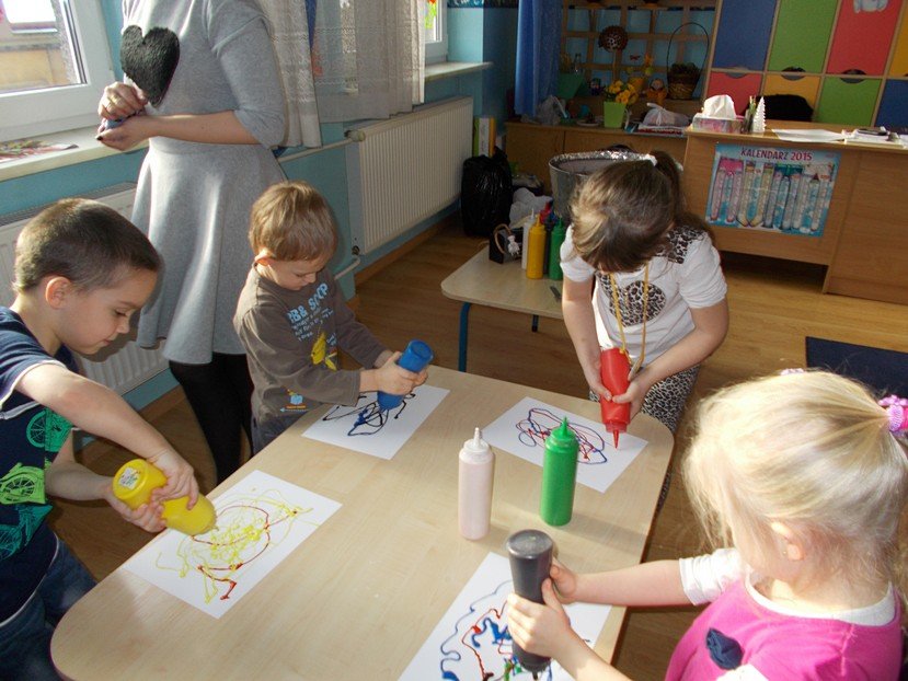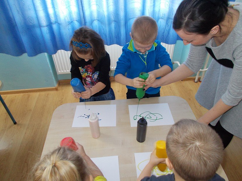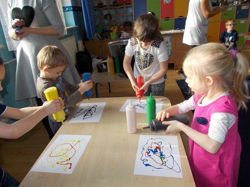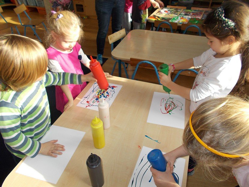 Promyczkowa kadra dba o to, aby ciągle działo się coś ciekawego i aby stale odwiedzali nas ciekawi ludzie. Tym razem dzieci miały możliwość uczestniczenia w zajęciach „Wirujące farby”.
