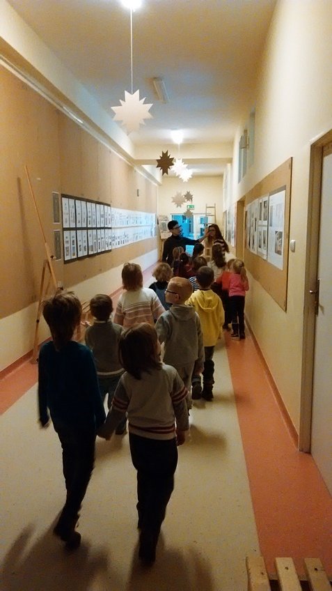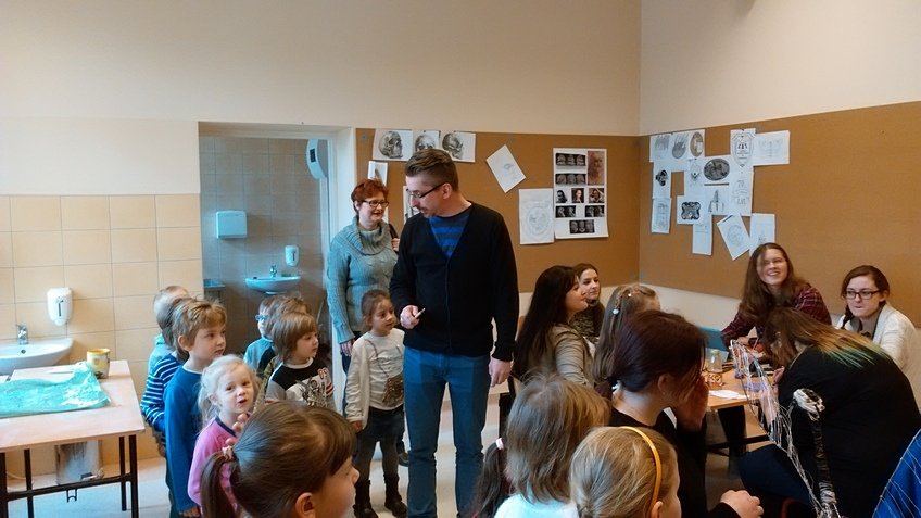 Jako pierwsze na zajęcia udały się nasze najstarsze przedszkolaki wraz z Panią Agnieszką i Panią Basią. Wizyta ta okazała się niezwykłym przeżyciem dla dzieci, nauczycieli, ale również młodzieży z klasy Ib Liceum Plastycznego.