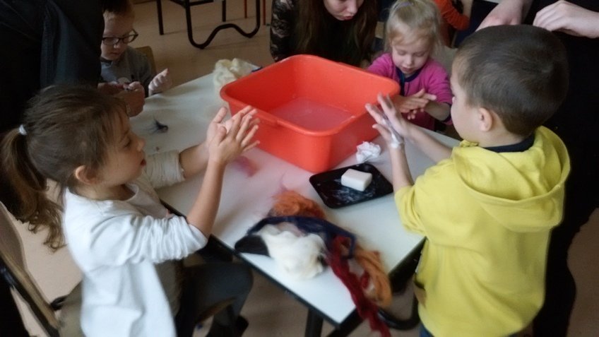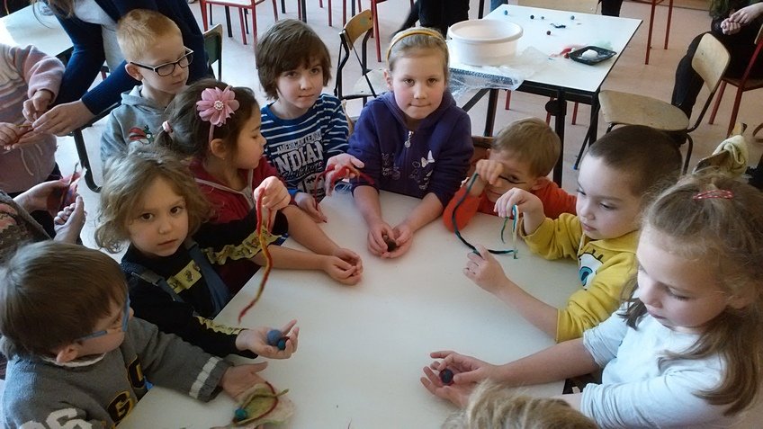 Zajęcia okazały się strzałem w dziesiątkę, ponieważ dzieci były tak zajęte pracą, że nie odczuły upływającego czasu i gdyby nie dzwonek na przerwę, wszyscy mogliby pracować jeszcze bardzo długo. Stworzone na warsztatach filcowe kulki, obrazki i wężyki stały się dla przedszkolaków skarbami, ponieważ w ich powstanie włożyły mnóstwo pracy i serca.