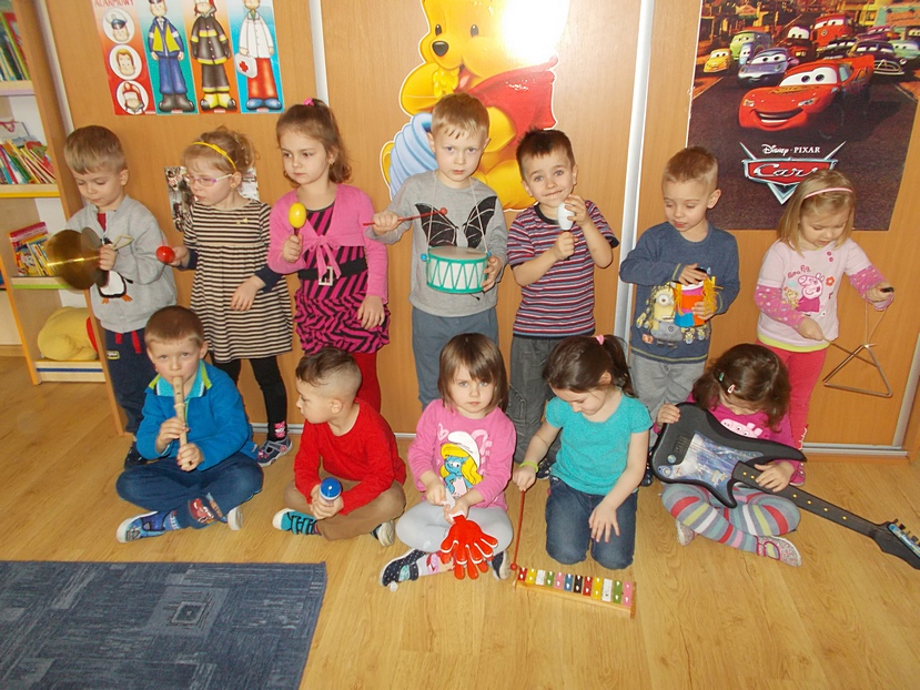 Pierwszy tydzień marca upłynął w naszym "Promyczku" pod znakiem muzyki. Było to związane z tematem "Chciałbym być muzykiem", jaki realizowały poszczególne grupy. W związku z tym panie wychowawczynie przygotowywały dzieciom różne interesujące zajęcia i zabawy związane z utrwalaniem nazw instrumentów, graniem na nich itp. Oczywiście nie odbyło się bez niespodzianki ...