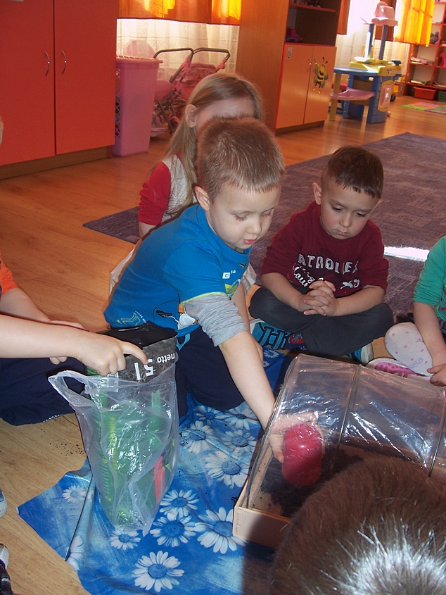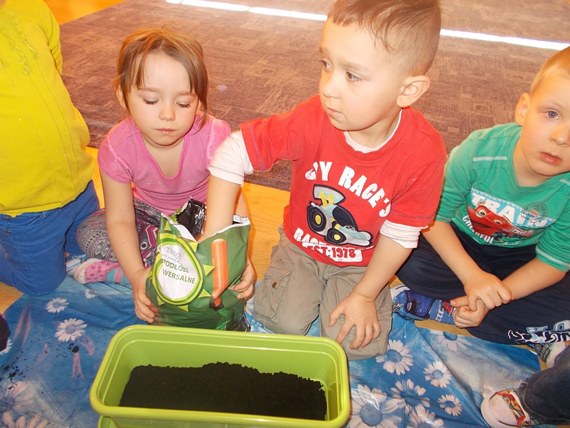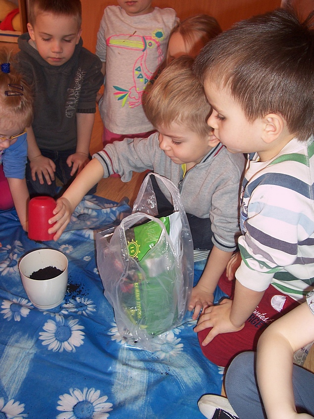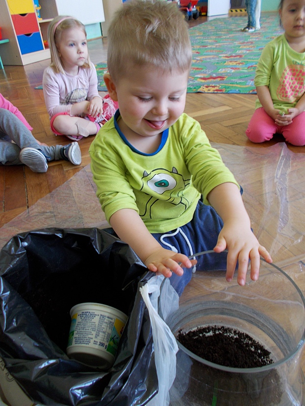 Asy i Smyki wraz z wychowawczyniami ochoczo zabrały się do pracy - przesypywały ziemię, siały nasionka, sadziły cebulki. Dzieci zdają sobie sprawę, że na efekty ich działań będzie trzeba chwilę poczekać, ale gdy pierwsze zielone główki pojawią się w doniczkach, radość będzie ogromna!