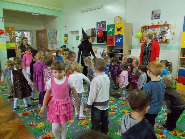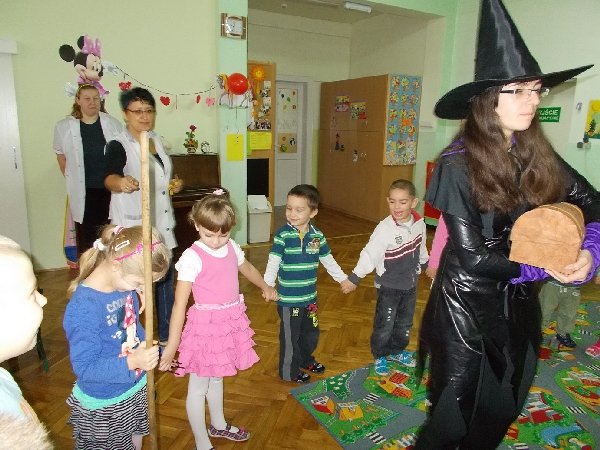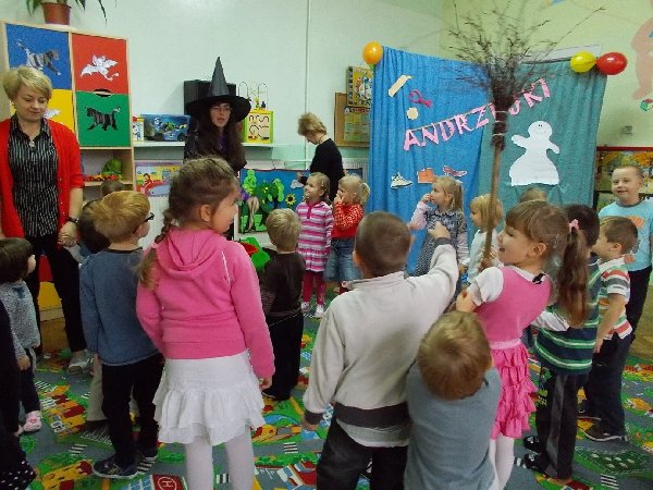 Wróżka przygotowała dla wszystkich przedszkolaków mnóstwo wróżb i zabaw – dzięki niej poznaliśmy tradycje związanych z Andrzejkami, dowiedzieliśmy się nieco o swojej przyszłości. Uroczystość przebiegła w radosnej atmosferze, dzięki piosenkom i zabawom, w których wszyscy bardzo chętnie brali udział.