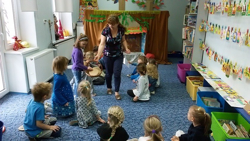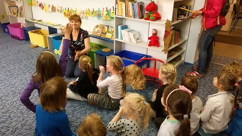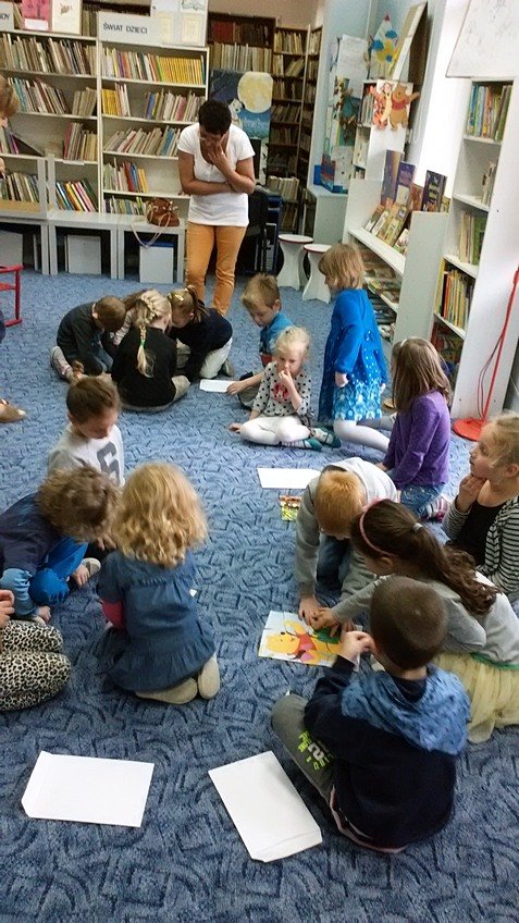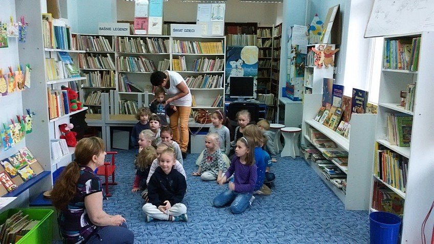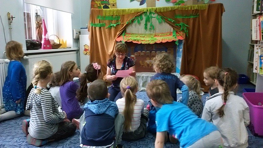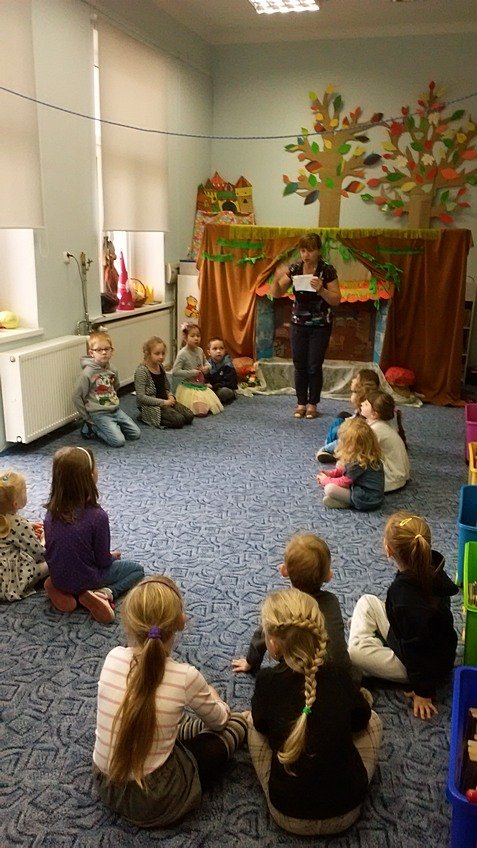 28.04.2015 roku dzieci z najstarszej grupy odwiedziły Bibliotekę Miejską im. J. Słowackiego, gdzie uczestniczyły w zajęciach "Zabawy z bajką i baśnią".