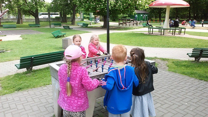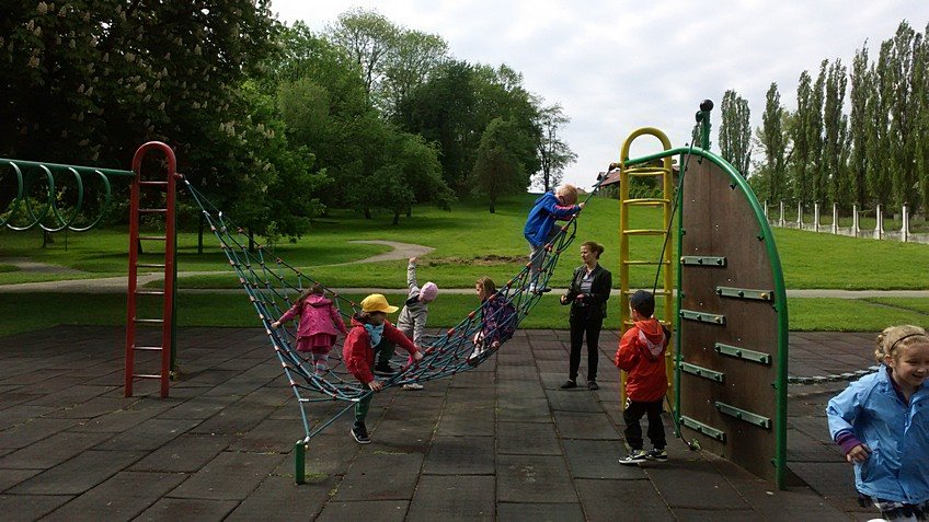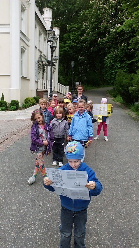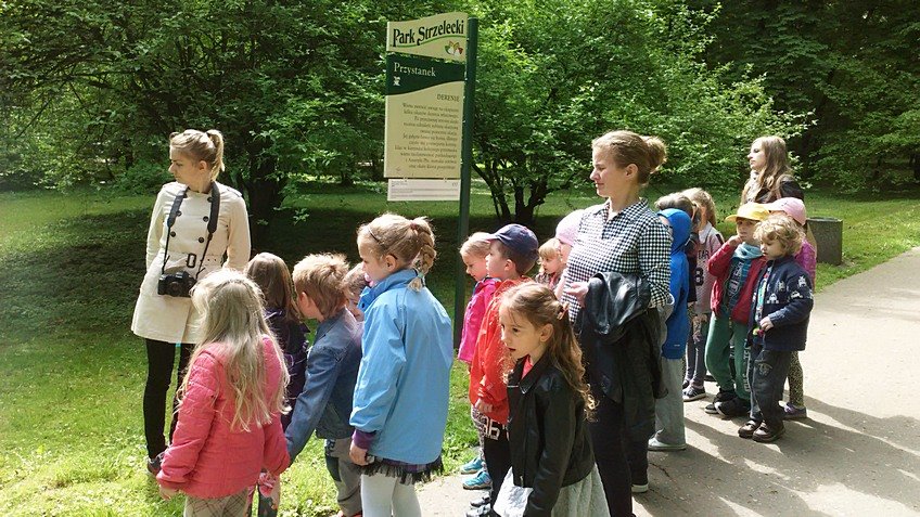 Po Parku oprowadzała nas bardzo sympatyczna Pani Ola, która opowiedział wiele ciekawych historii związanych z najważniejszymi atrakcjami Parku. Idąc śladami sztuki dzieci dowiedziały się, czym jest Mauzoleum J. Bema, dlaczego rzeźba "Melancholia" zmienia kolory oraz co znajduje się w Palacyku Strzeleckim. Nastepnie wzięły udział w warsztatach plastycznych, gdzie z róznych materiałów papierniczych mogły tworzyć obrazki przedstawiające najciekawsze, według dzieci, miejsca w Parku Strzeleckim. Oczywiście w tym dniu nie mogliśmy również ominąć ulubionego placu zabaw, który stał się najlepszym zwieńczeniem naszej wycieczki.