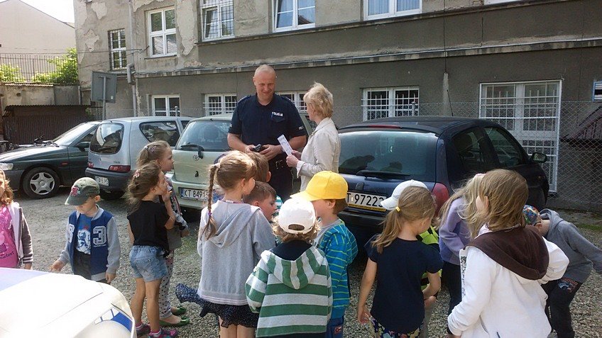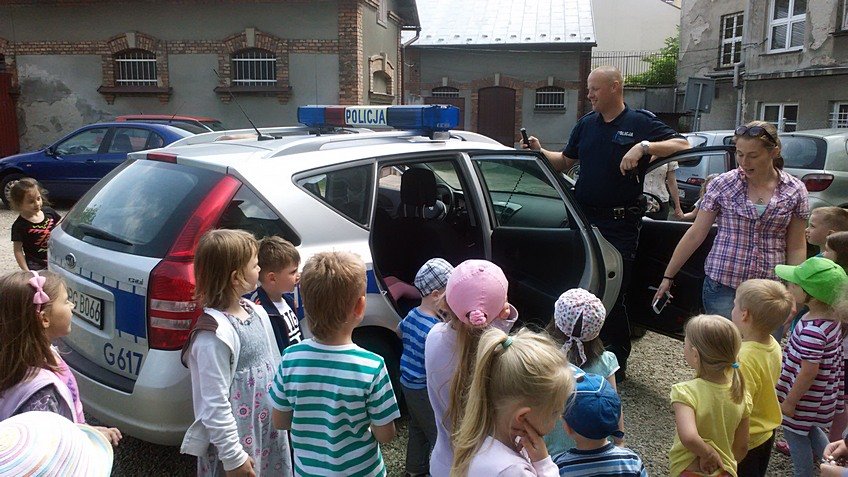 Nasi podopieczni dowiedzieli się jak należy zachowywać się w chwilach zagrożenia oraz co robić, aby takich niebezpiecznych sytuacji w czasie wolnym uniknąć. Ponadto Panowie Policjanci pozwolili obejrzeć dzieciom z bliska samochód policyjny i choć przez chwile poczuć się jak prawdziwy policjant. Musimy przyznać, że było to bardzo emocjonujące spotkanie i oby ta lekcja pozostała w pamięci dzieci na bardzo długo.