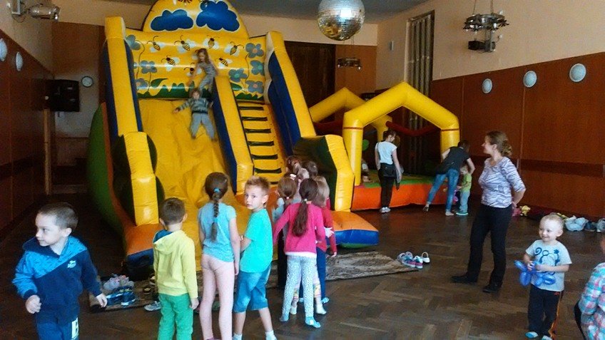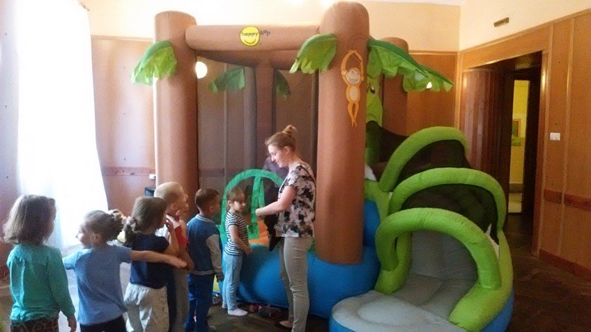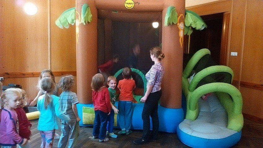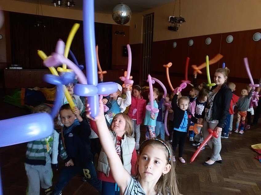 Dzieci mogły zjeżdżać na dmuchanych zjeżdżalniach, skakać na trampolinach, pływać w suchym basenie i tańczyć do woli. Ponadto brały udział w zabawach z chustą animacyjną i różnych zawodach sportowych. Otrzymały również piękne balonowe stworki, które były zwieńczeniem dnia pełnego radości i szaleństwa.
