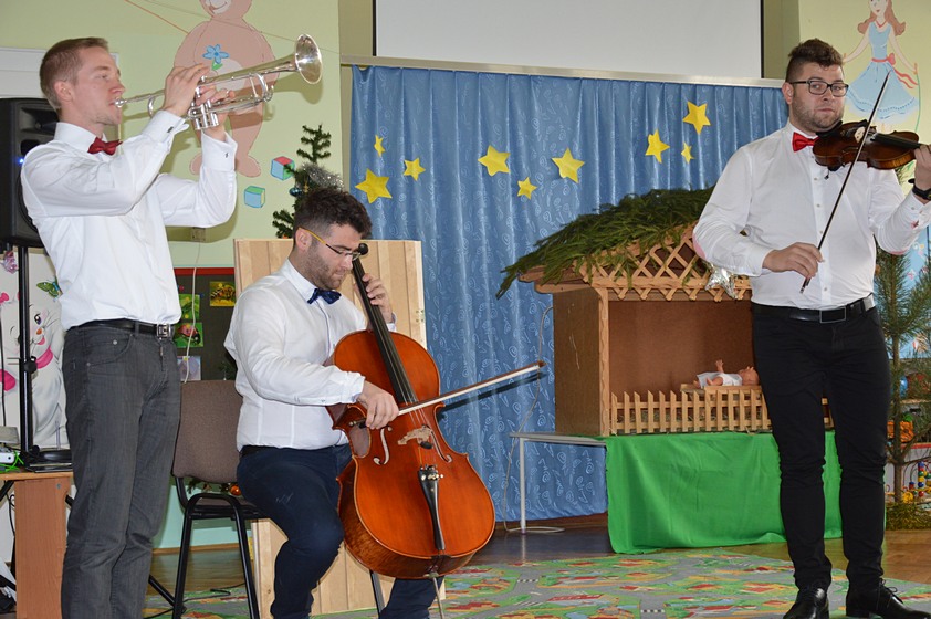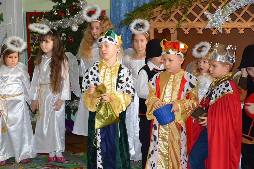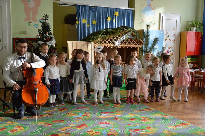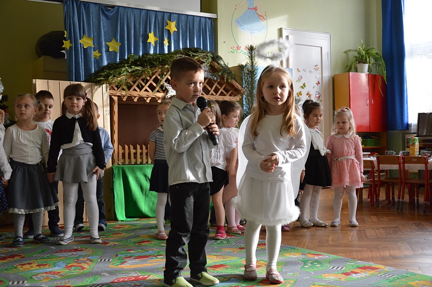 22 grudnia 2015 roku w naszym przedszkolu odbyła się Wigilia. Jak nakazuje tradycja połamaliśmy się opłatkiem składając przy tym życzenia. Dzieci wraz ze swoimi paniami przygotowały jasełkowe inscenizacje, które przeplatane były pięknymi kolędami, a nasi zaproszeni goście umilili je piękną muzyką.