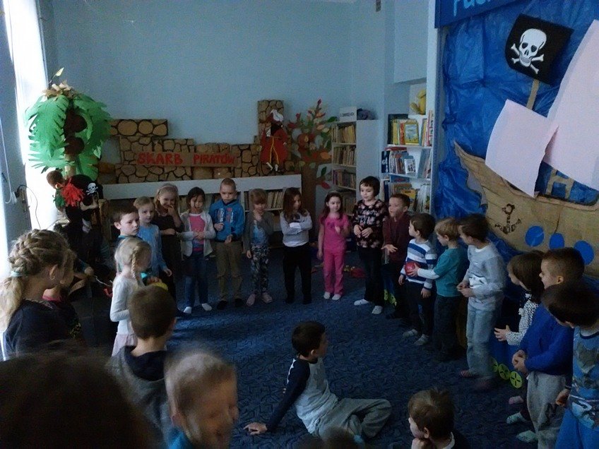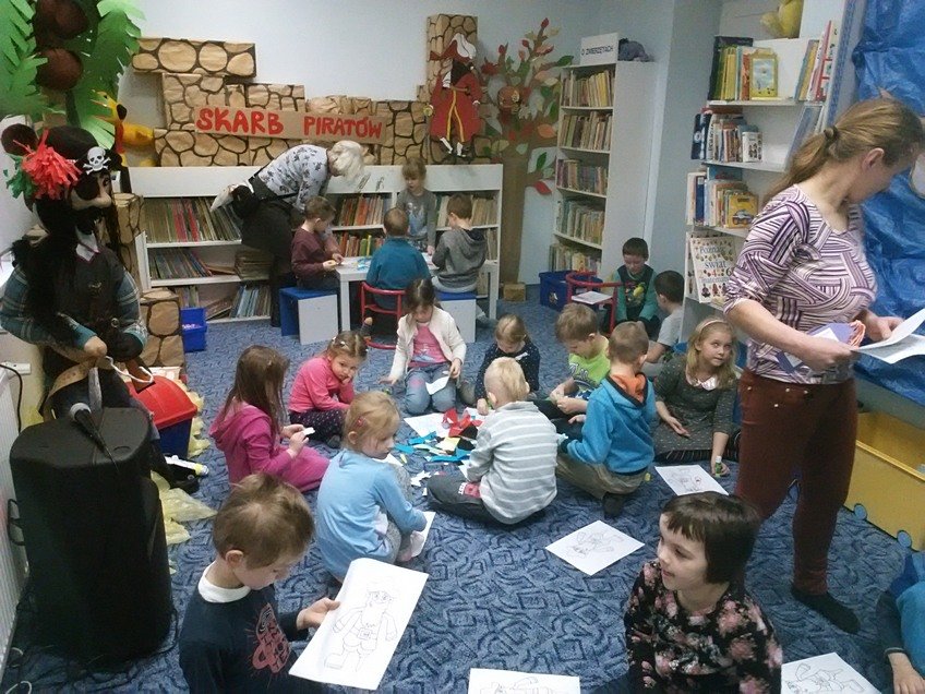 W ferie różne instytucje na terenie Tarnowa zorganizowały dla dzieci wiele atrakcji. Jedną z nich były spotkania i warsztaty o piratach w Bibliotece Miejskiej im. J. Słowackiego. Dzieci z naszego przedszkola miały okazję uczestniczyć w jednym z takich spotkań, co na pewno umiliło im czas ferii.