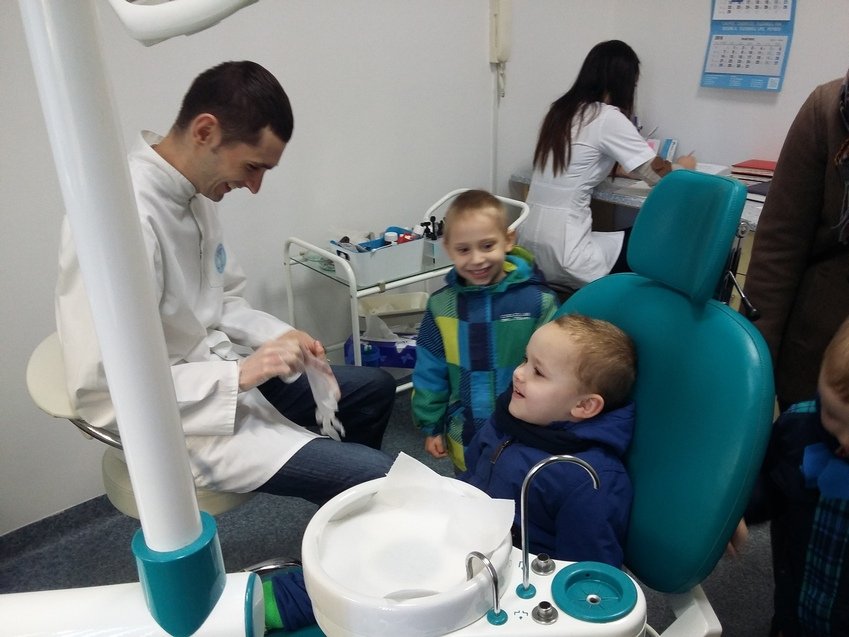 Dzielne Smyki odważyły się pokazać ząbki panu dentyście. Okazało się, że nie ma się czego bać i z niecierpliwością czekamy na kolejną wizytę. Smyki otrzymały w prezencie pamiątkowe naklejki.