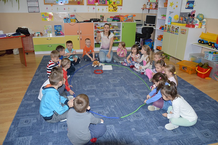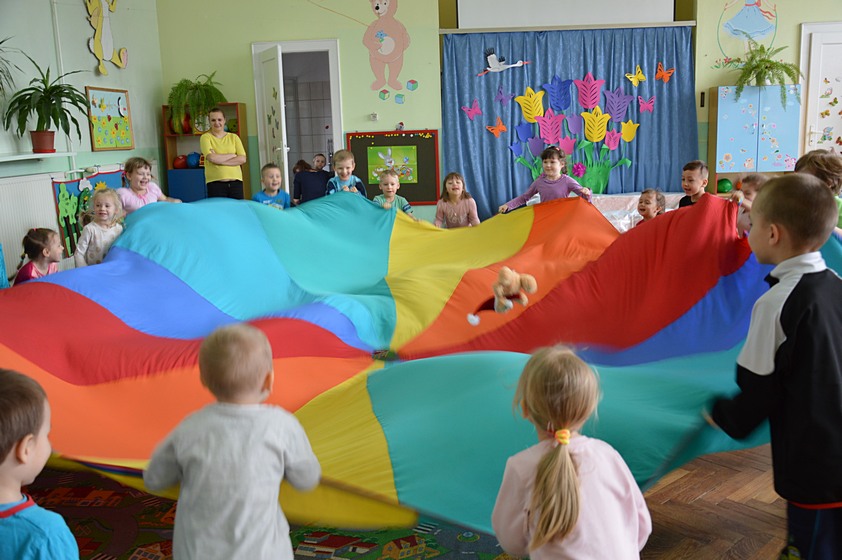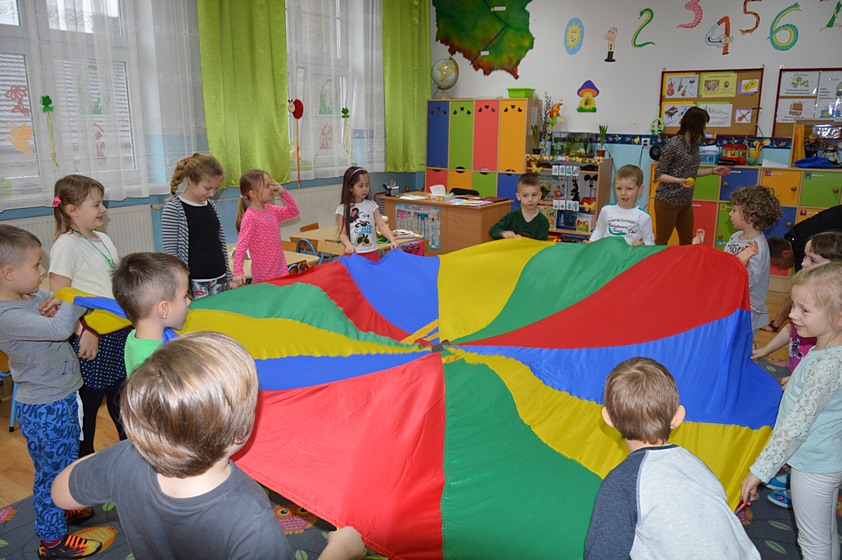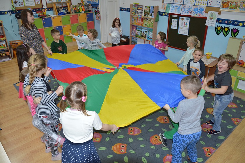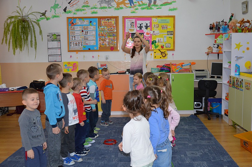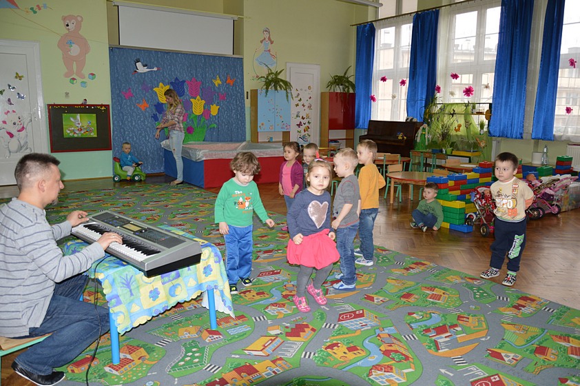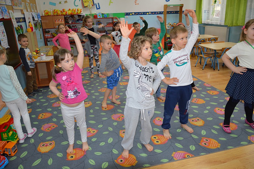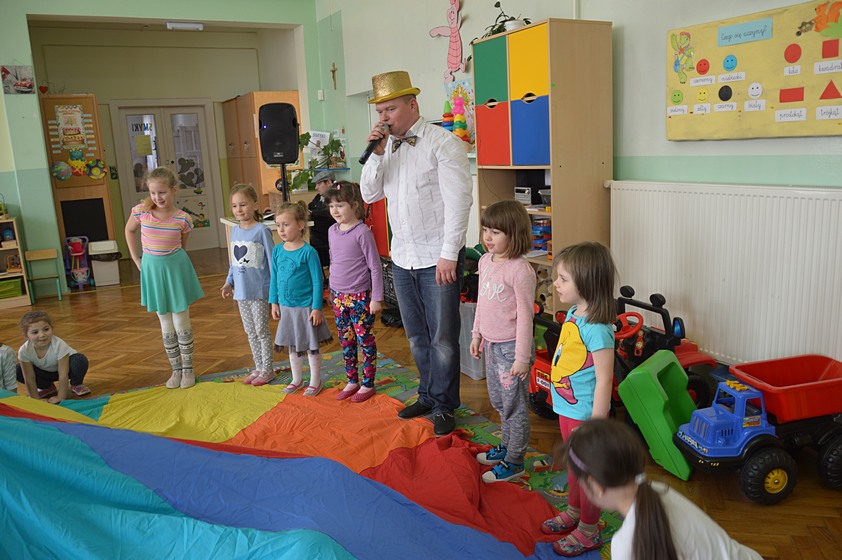 Dni Otwarte w Promyczku rozpoczęliśmy od zabawy prowadzonej przez zaproszonych gości. Całe przedszkole wypełniło się śmiechem zadowolonych przedszkolaków, którzy chętnie bawili się i tańczyli.