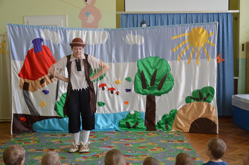 W ubiegły wtorek dzieci z naszego przedszkola miały okazję obejrzeć przedstawienie o dzielnym Szewczyku Janku, który odkrył, że Smok Wawelski nie był wcale taki groźny jak wszyscy mówili, a nawet razem z dziećmi zaprzyjaźnił się z nim.