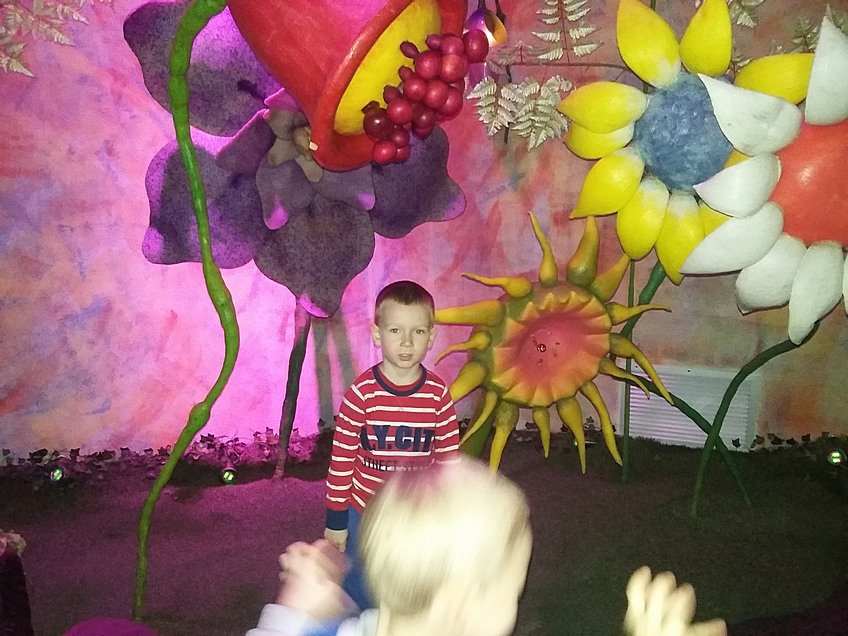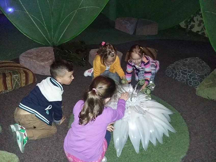 Na dzieci czekało wiele atrakcji. Najpierw wszyscy udaliśmy się do obejrzenia wystawy edukacyjnej „Bajkowy świat”. Podczas podróży pociągiem byliśmy w podwodnych głębinach oraz w kosmosie, a po drodze spotkaliśmy bohaterów różnych baśni i bajek.