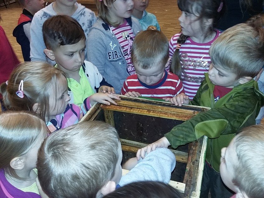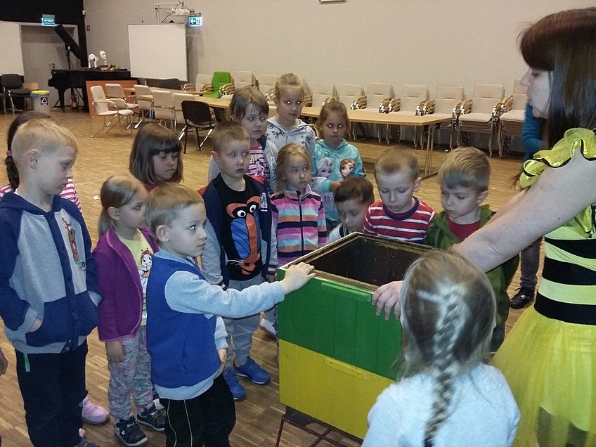 W trakcie zwiedzania obejrzeliśmy bajeczkę o Koziołku Matołku w przytulnej salce kinowej umieszczonej w olbrzymiej komodzie. Dzieci uczestniczyły w warsztatach pt: „Tajemnica łyżeczki miodu”. Zapoznały się z produkcją miodu przez pszczoły oraz z pracą pszczelarza. Prawdziwą ciekawostką okazała się być informacja, iż pszczoła w trakcie swojego życia produkuje tylko jedną łyżeczkę miodu!