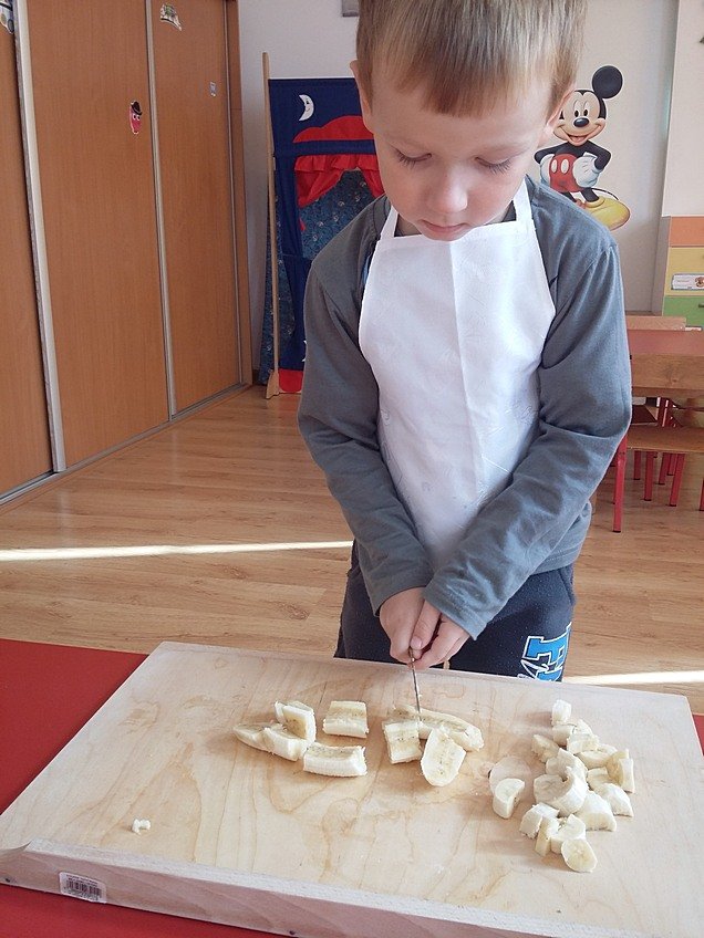 Zwieńczeniem zajęć było przygotowanie pysznej owocowej sałatki z ulubionych owoców przyniesionych przez dzieci.