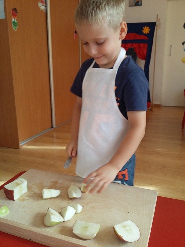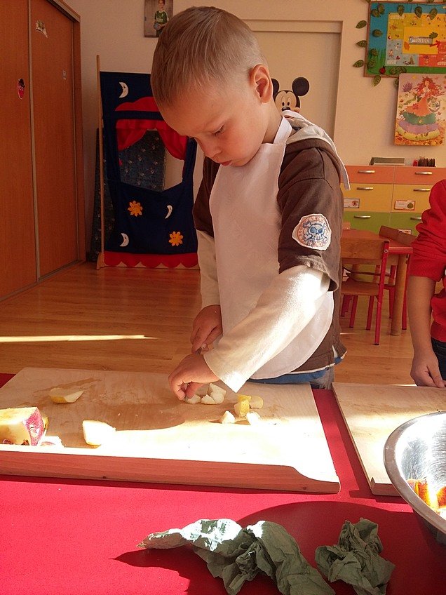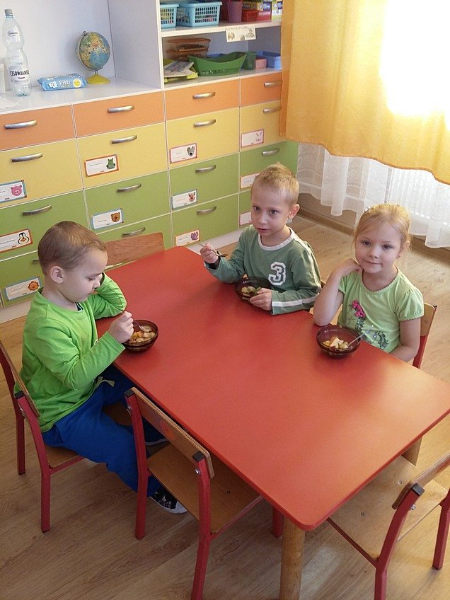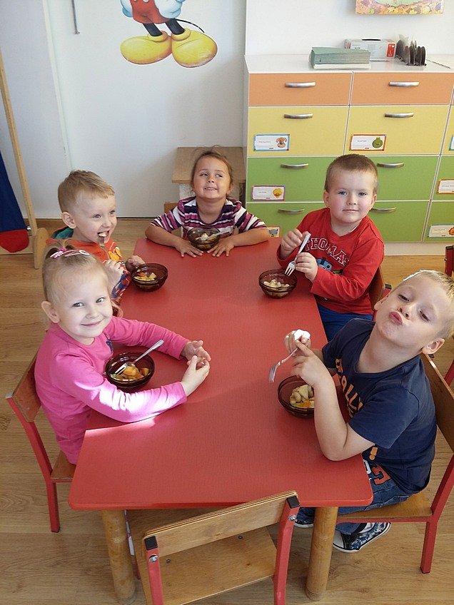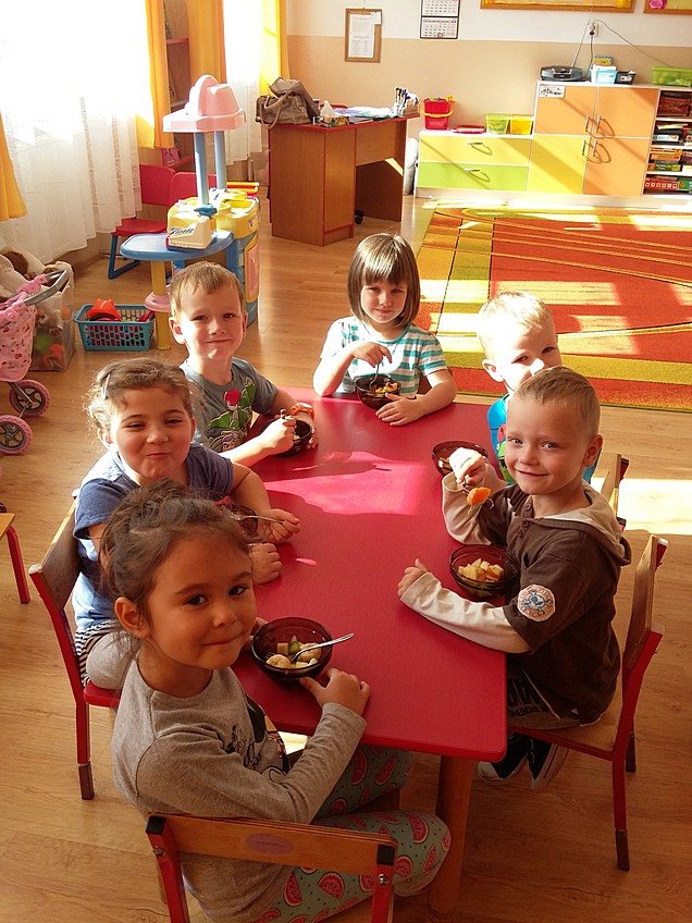 W ubiegłym tygodniu w związku z realizowanym tematem kompleksowym "Jesień w sadzie" dzieci z grupy Asów zapoznały się z wyglądem oraz nazwami sezonowych owoców, dowiedziały się jak ważne dla naszego zdrowia jest spożywanie owoców.