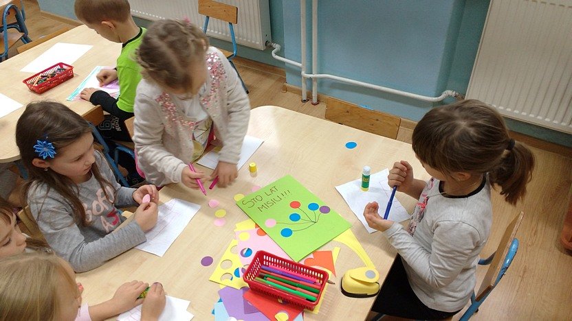 Nasze przedszkolaki starannie przygotowywały się do wspaniałej imprezy - Urodzin Książkowego Misia. Zuchy ćwiczyły z tej okazji śpiew piosenki "Sto lat", ale także przygotowywały Misiowi preznet-niespodziankę...