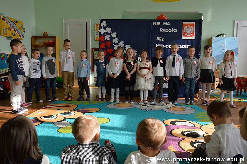 Podczas akademii panowała uroczysta powaga, a śpiew hymnu wprowadził podniosły nastrój. Warto dodać, że każdy przedszkolak dumnie nosił tego dnia kotylion w kolorach narodowych.