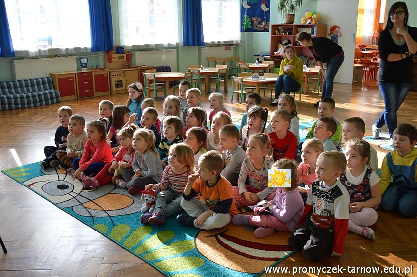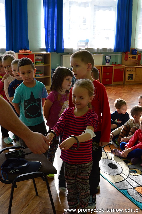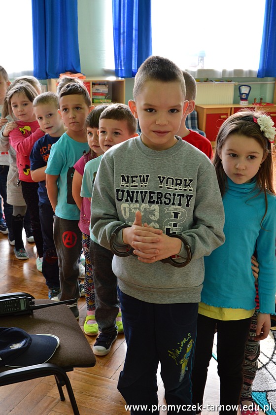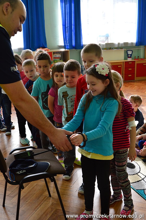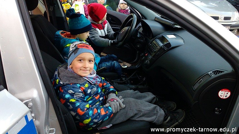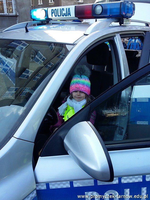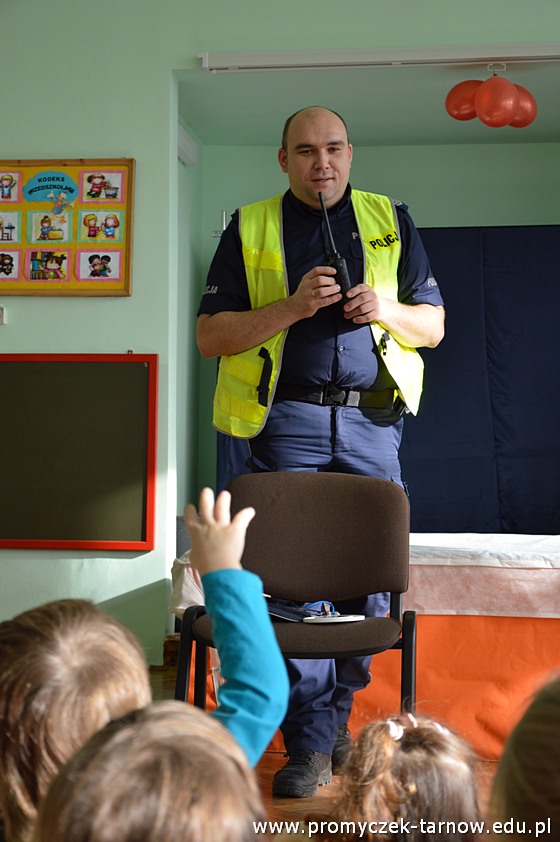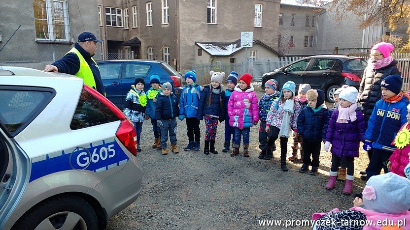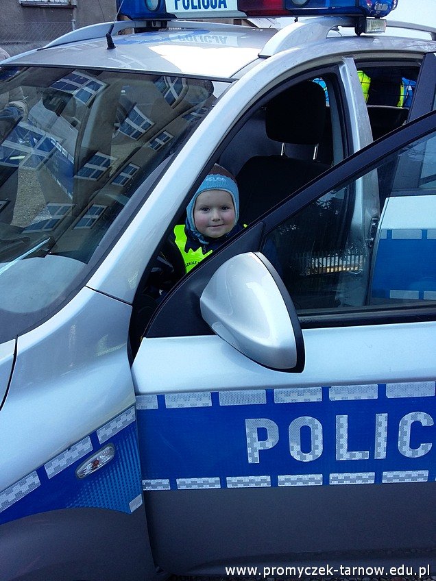 15 listopada gościliśmy w naszym Promyczku przemiłego gościa - sierżanta sztabowego Marcina Lamota. Pan policjant przybliżył nam nieco swoją profesję, a także zaprezentował atrybuty niezbędne do wykonywania działań policyjnych. Tradycyjnie już mogliśmy także obejrzeć z bliska radiowóz policyjny, odważne Promyczki wsiadły do środka tego wspaniałego auta!