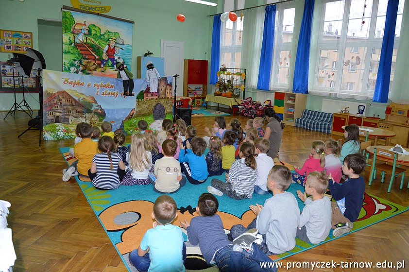 Staramy się, by przynajmniej raz w miesiącu w naszym Promyczku gościł teatrzyk, bądź miało miejsce inne wydarzenie kulturalne. Tym razem zaprezentowała się jedna z firm z bajką "O rybaku i złotej rybce".