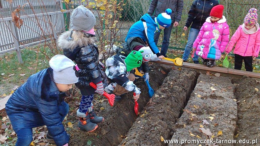 Listopad posypał nieco śniegiem, ale ogrzewa nas również cieplutkim słoneczkiem. W związku z piękną pogodą dzieci z grupy Zuchy wraz z panią Ulą oraz panem Markiem, zabrały się za sadzenie kwiatów w przedszkolnym ogródku.