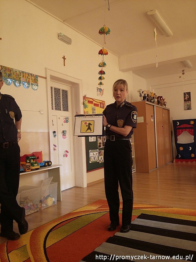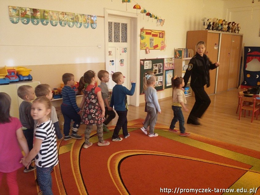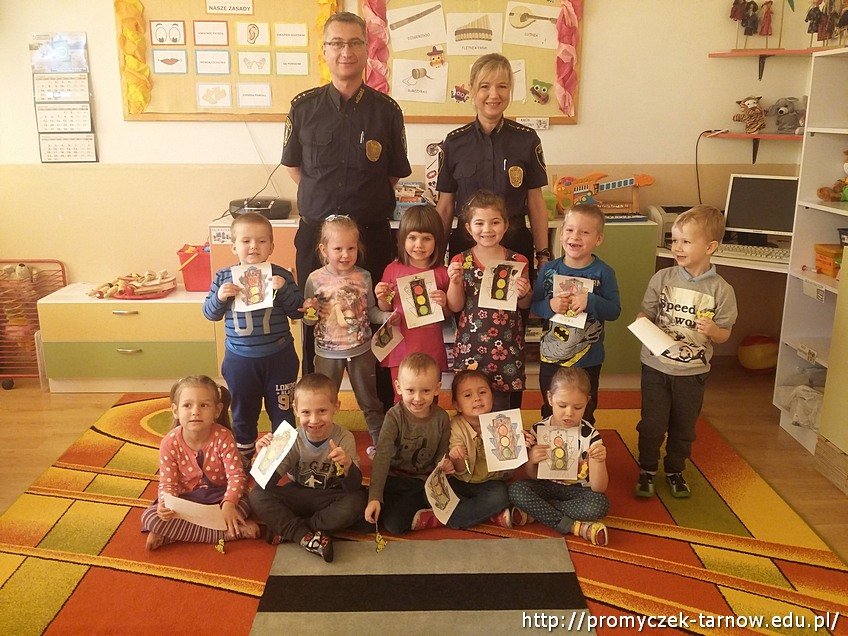 Prawdziwą gratką okazał się przyniesiony przez gości dywan- "zebra", za pomocą którego dzieci uczyły się jak bezpiecznie przechodzić przez jezdnię. Na koniec dzieci otrzymały odblaski aby już zawsze były widoczne i bezpieczne.