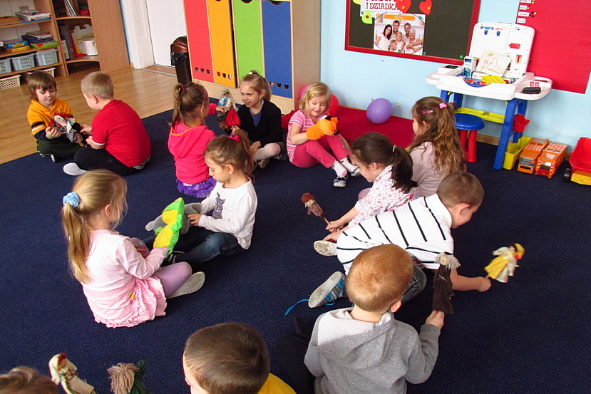 W naszym przedszkolu prężnie działa wiele kołek zainteresowań. Jednym z nich jest kółko teatralne. Podczas zajęć prowadzonych przez panią Anię dzieci mają możliwość wyrażania się w różnych formach ekspresji: w mowie, ruchu, geście, rysunku i śpiewie.