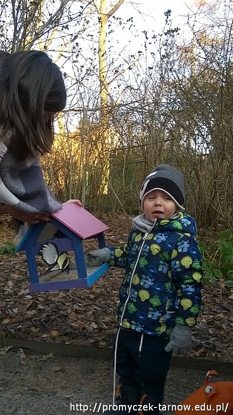 W piątek rozmawialiśmy o ptakach. Zastanawialiśmy się, które odlatują do ciepłych krajów, a które zostają z nami podczas srogiej zimy. W związku z tym udaliśmy się do naszego przedszkolnego ogrodu, by pomóc naszym skrzydlatym przyjaciołom.