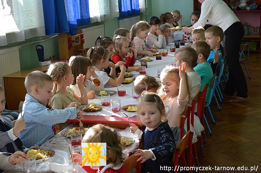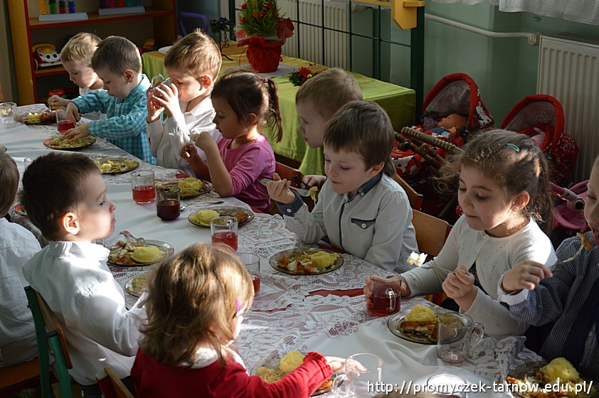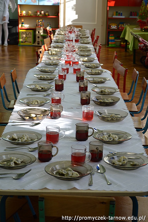 Na zakończenie cała przedszkolna społeczność zasiadła do uroczystego posiłku, składającego się tradycyjnie z barszczu z uszkami i smakowitej ryby.