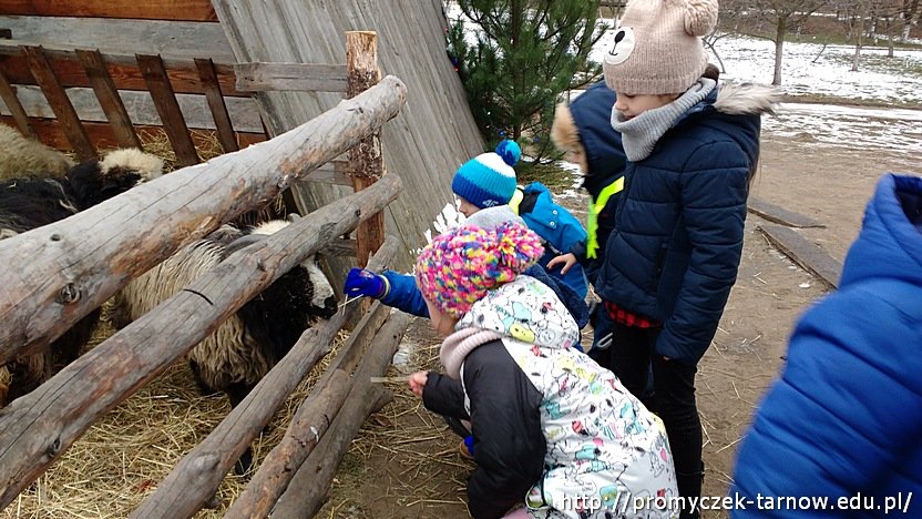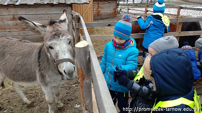Aby wprowadzić trochę luźniejszą atmosferę i zrelaksować się po trudnych rozmowach o dymie pani Ula zabrała przedszkolaki do żywej szopki przy klasztorze Bernardynów. Dzieci były zachwycone i urzeczone zwierzętami, które uważnie słuchały co też opowiadają im małe Promyczki. Nawet osiołek cieszył się z naszych odwiedzin :)