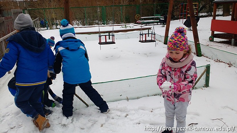 Spadł wreszcie upragniony śnieg. Dzieci czekały na niego z niecierpliwością, gdyż pani Ula obiecała, że gdy tylko pojawi się biały puch, pójdą razem lepić bałwana.