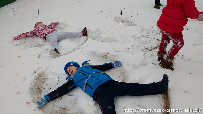 Cóż to była za wspaniała zabawa! Powstał nie tylko śnieżny bałwan, ale także aniołki śniegowe, a bitwa na śnieżki dawno nie była tak ekscytująca. Słoneczko ogrzewało zuchowe noski, oby jak najdłużej trwałą taka piękna zimowa aura.