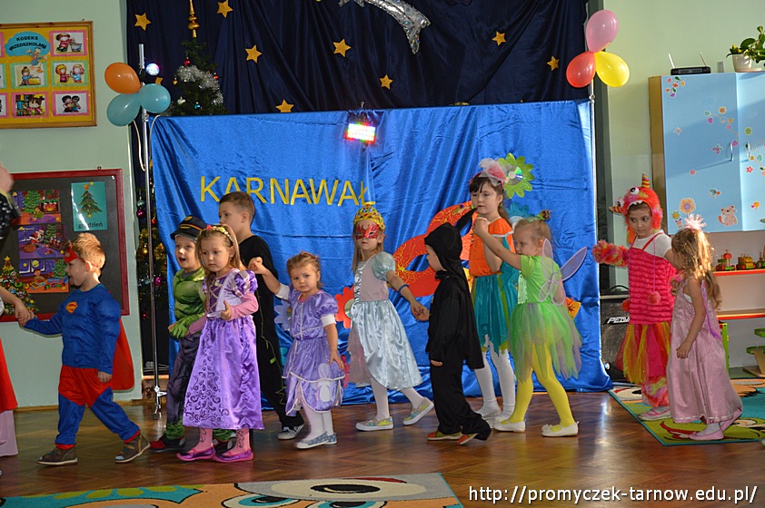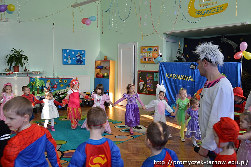 11 stycznia w naszym Przedszkolu odbył się bal karnawałowy. Dla wszystkich Promyczków taki bal to wydarzenie wyjątkowe, wyczekiwane przez wiele tygodni. Sala Smyków przemieniła się w salę balową, przystrojoną kolorowymi serpentynami i balonami.