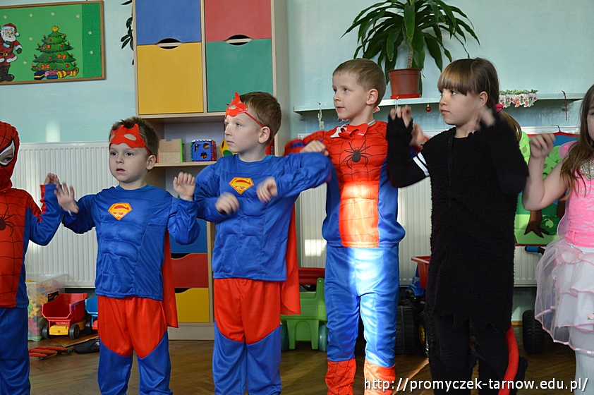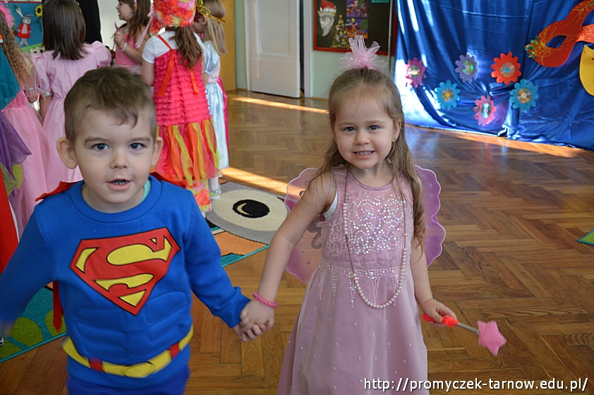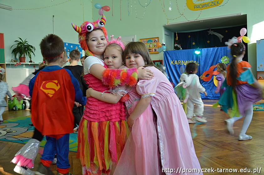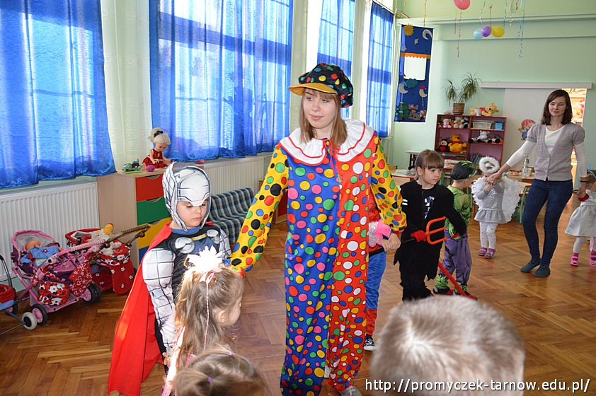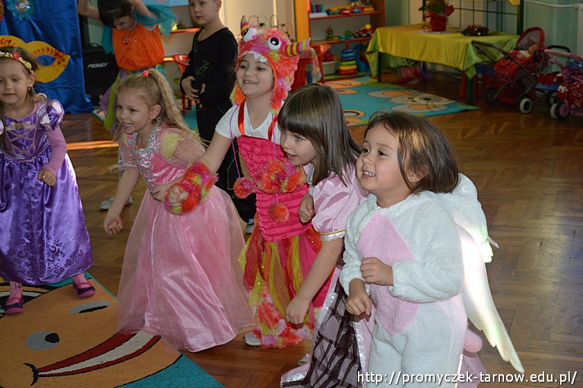 Promyczki uczestniczyły z ochotą we wspólnych zabawach prowadzonych przez grupę K & G. Tańców i śmiechu było mnóstwo, o czym świadczą roześmiane buzie na zdjęciach. Następny bal karnawałowy już za rok!