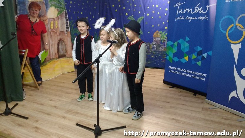 Promyczkowi wokaliści startowali w dwóch kategoriach: Gabrysia z grupy Asy oraz Natalka z grupy Zuchy zaśpiewały w kategorii solistów, natomiast wśród zespołów reprezentowała nas "Dryżuna Wigilijna" (Julia , Ola, Dawid i Kacper z grupy Zuchy) oraz "Promyczki Radości" (Amelka i Martynka z grupy Zuchy).