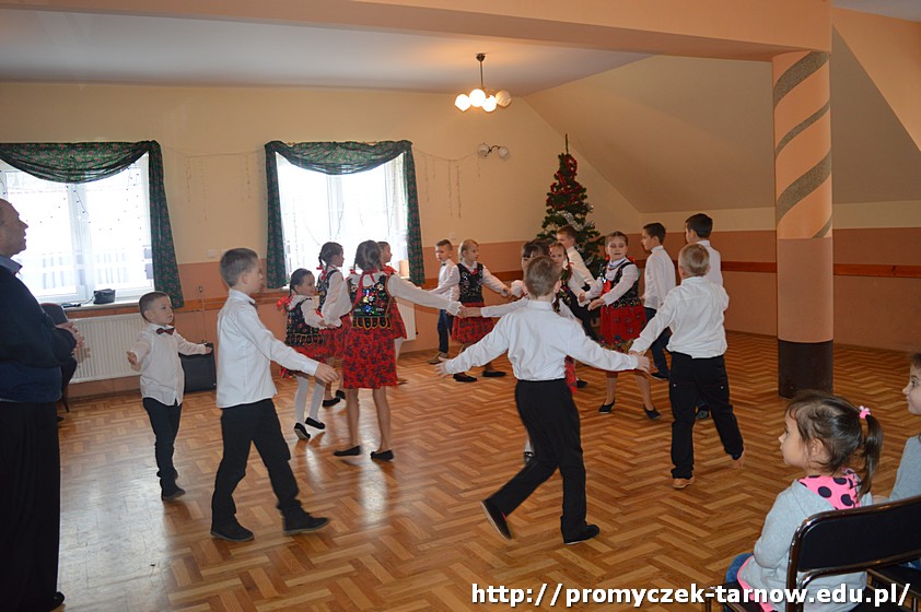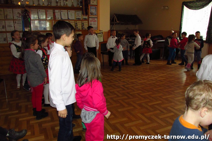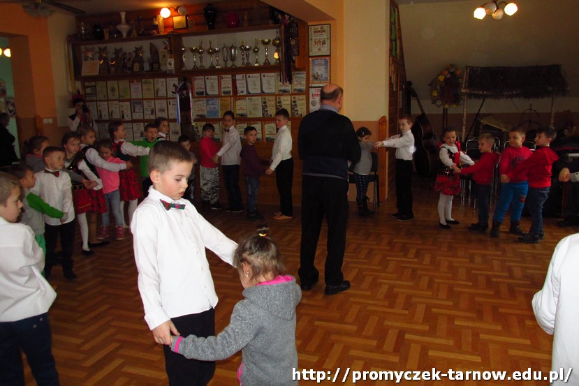 Wyjazd okazał się strzałem w dziesiątkę. Zostaliśmy bardzo ciepło i serdecznie przywitani, a sam pokaz tańców ludowych w wykonaniu członków zespołu podrywał nasze Promyczki do tańca. Choreograf zespołu przygotował dla nas niespodziankę i zaprosił naszych podopiecznych do wspólnej zabawy. Okazało się, że obie grupy bardzo szybko się zintegrowały, co sprawiło, że zabawa była jeszcze przyjemniejsza. Na koniec mieszkanki Gwoźdźca przygotowały dla nas słodki poczęstunek oraz pizzę, która po takich atrakcjach smakowała wybornie.