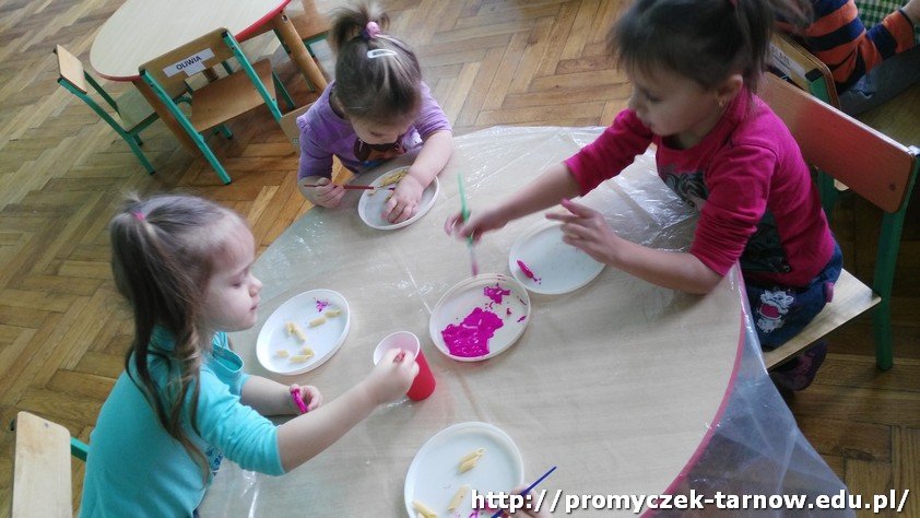 Przedszkolaki przygotowały również dwie prace plastyczne, które dekorowały przedszkole podczas Święta Babci i Dziadka, a mianowicie bransoletkę Babci i muchę Dziadzia, a wszystko to z... makaronu! Takie zdolne dzieci!