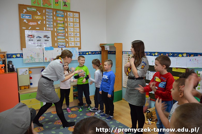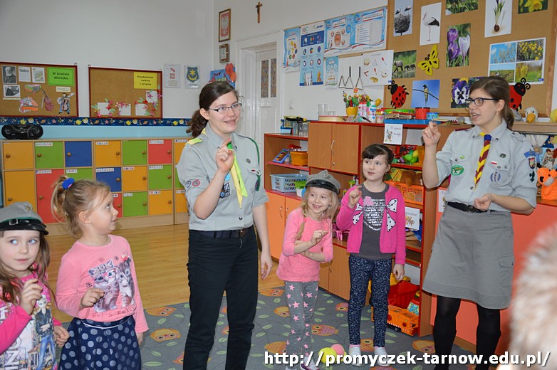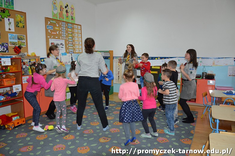 Hufiec reprezentowały cztery druhny, które w bardzo przystępny sposób przedstawiły naszym Promyczkom ideę harcerstwa, opowiedziały o harcerskich tradycjach, a także omówiły elementy swojego ubioru. Na koniec spotkań w każdej z grup druhny przygotowały zabawy integracyjne, które sprawiły wszystkim wielką radość.