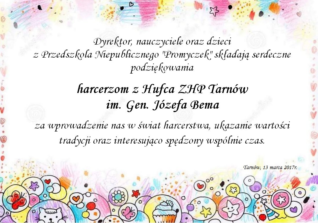 W poniedziałek 13 marca 2017 roku w nasze skromne progi zawitali niezwykli goście. Byli to harcerze z Hufca ZHP Tarnów im. gen. Józefa Bema.