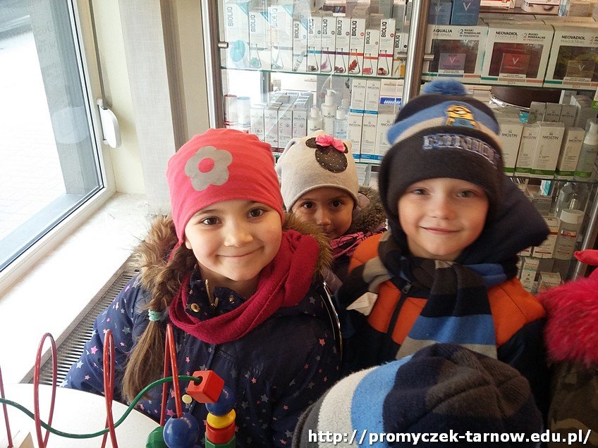 Okres zimowo - wiosenny to czas pełen przeziębień. Grupa Asów w czasie zajęć dydaktycznych zapoznała się ze sposobami zapobiegania chorobom oraz dowiedziała się, jak ważna dla naszego zdrowia jest aktywność fizyczna oraz zdrowe odżywianie. Na zakończenie tygodnia o zdrowiu dzieci wybrały się do pobliskiej apteki. Serdecznie dziękujemy za ciepłe przyjęcie i słodki upominek.