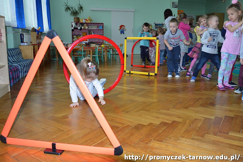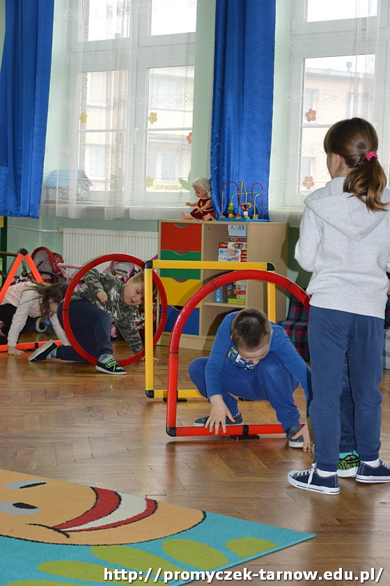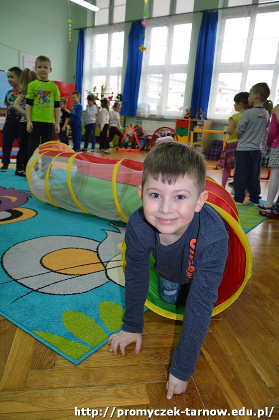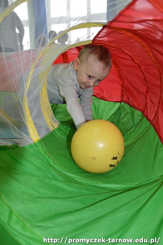 Drugi z dni otwartych rozpoczął się wspólną zabawą na sali Smyków. Dzieci miały przygotowane kilka stacji - a na każdej z nich inne ćwiczenia sprawnościowe. Można było wykazać się m.in. precyzją ruchów w slalomie czy też zwinnością w przechodzeniu przez figury.