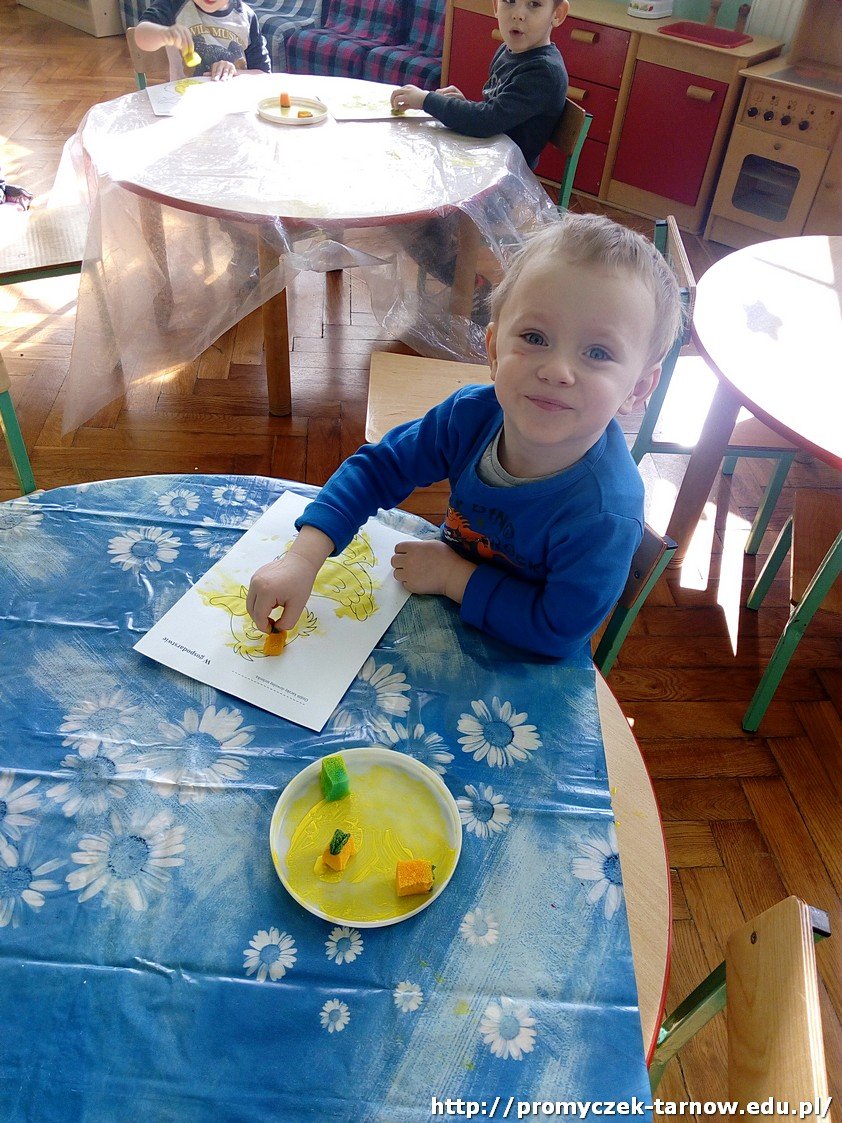 Gdy słyszymy o malowaniu farbami myślimy głównie o wykorzystaniu pędzla. Smyki burząc stereotypy i wykorzystując przemioty codziennego użytku pokazały w swojej galerii prac niecodzienne zastowowanie gąbek i patyczków higienicznych, a co za tym idzie powstałyn niepowtarzalne dzieła. Do dobrej zabawy można wykorzystać wszystko, trzeba tylko chcieć!