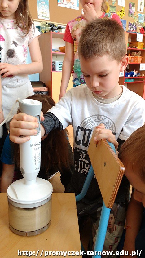 Dzieci pracowały z wielką werwą by spróbować tego obco brzmiącego smakołyku, z którym prawie nikt się dotąd nie zetknął. Blender, łyżki poszły w ruch i raz dwa powstała smaczna chałwa. Smakowała wszystkim!