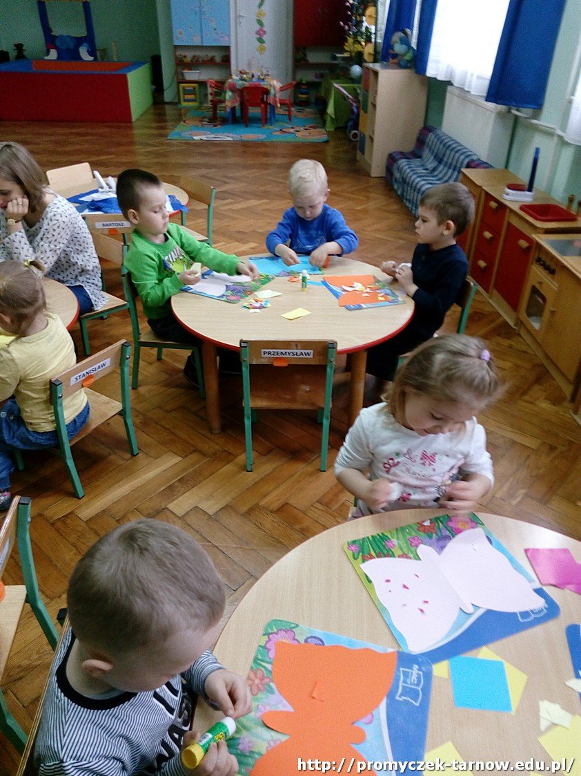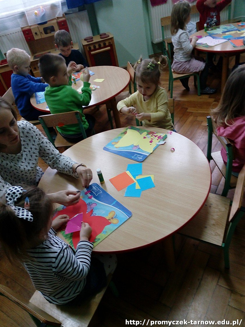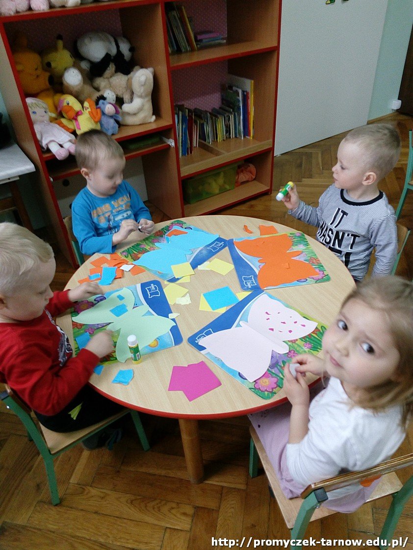 W drugim tygodniu grupę Smyków odwiedziły kolorowe motyle wykonane metodą wydzieranki z papieru. Prace można podziwiać na wystawie w przedszkolnym korytarzu.