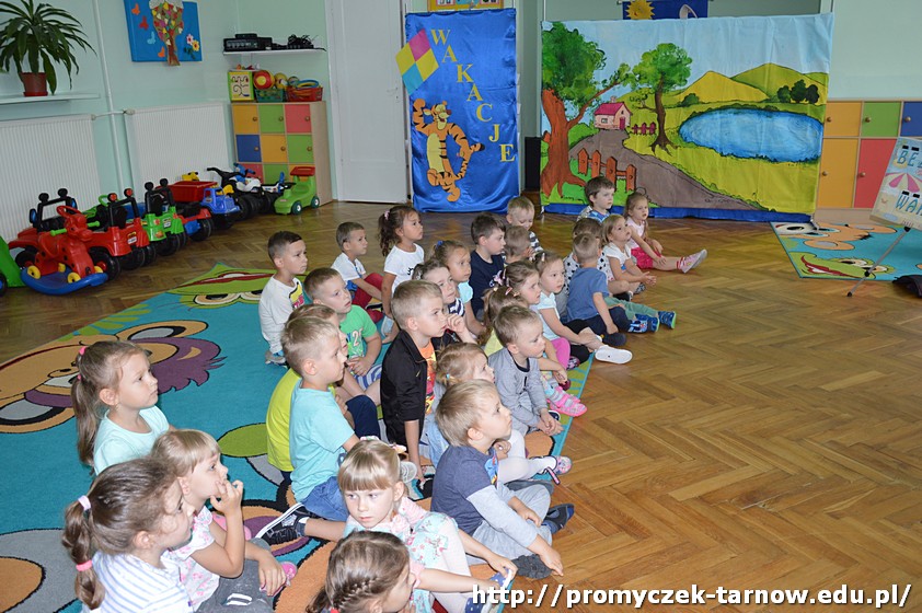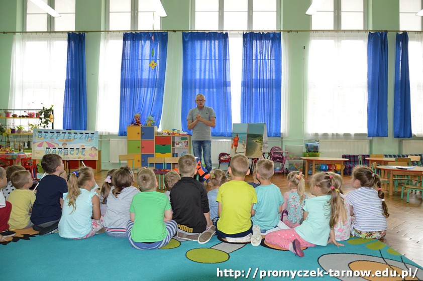 Nasze Promyczki rozpoczęły wakacje od przypomnienia sobie zasad bezpieczeństwa obowiązujących w różnych miejscach podczas wypoczynku. Dzieci brały udział w prezentacji dotyczącej bezpieczeństwa nad wodą. Mamy nadzieję, że wiele zostało w ich główkach, ponieważ pan prowadzący poruszył wiele istotnych tematów.