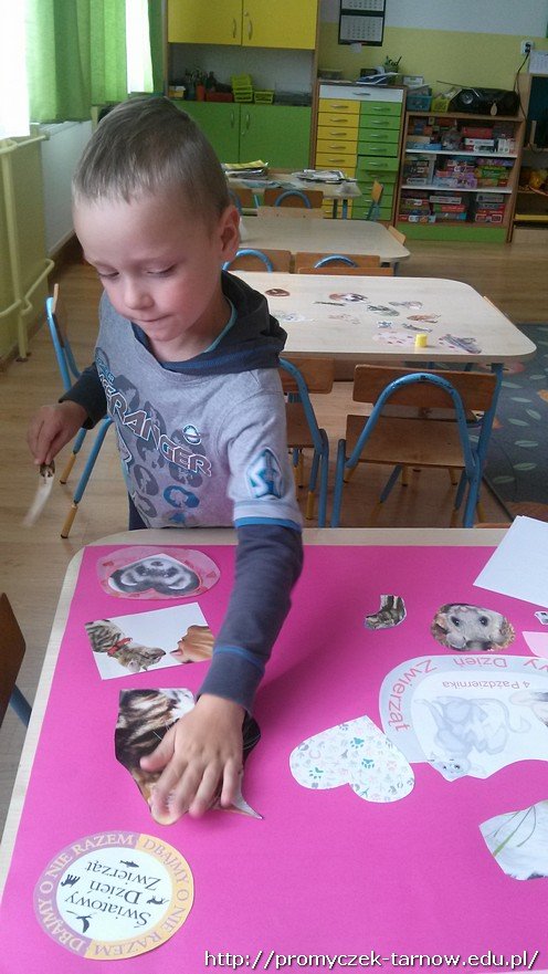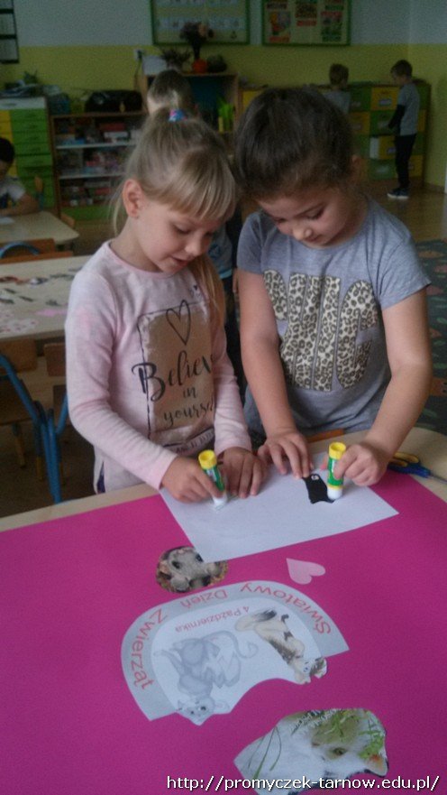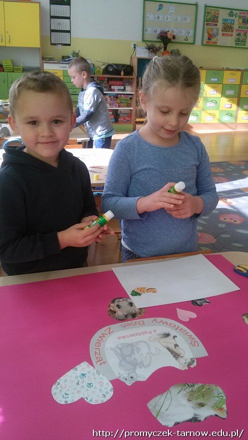 Dzieci poznały różne ciekawostki na temat zwierząt, naśladowały ich głosy oraz utrwaliły wiadomości dotyczące opieki nad nimi. Na zakończenie zajęć Zuchy wspólnie wykonały plakat, który można podziwiać w przedszkolnym korytarzu oraz udały się do sklepu zoologicznego.